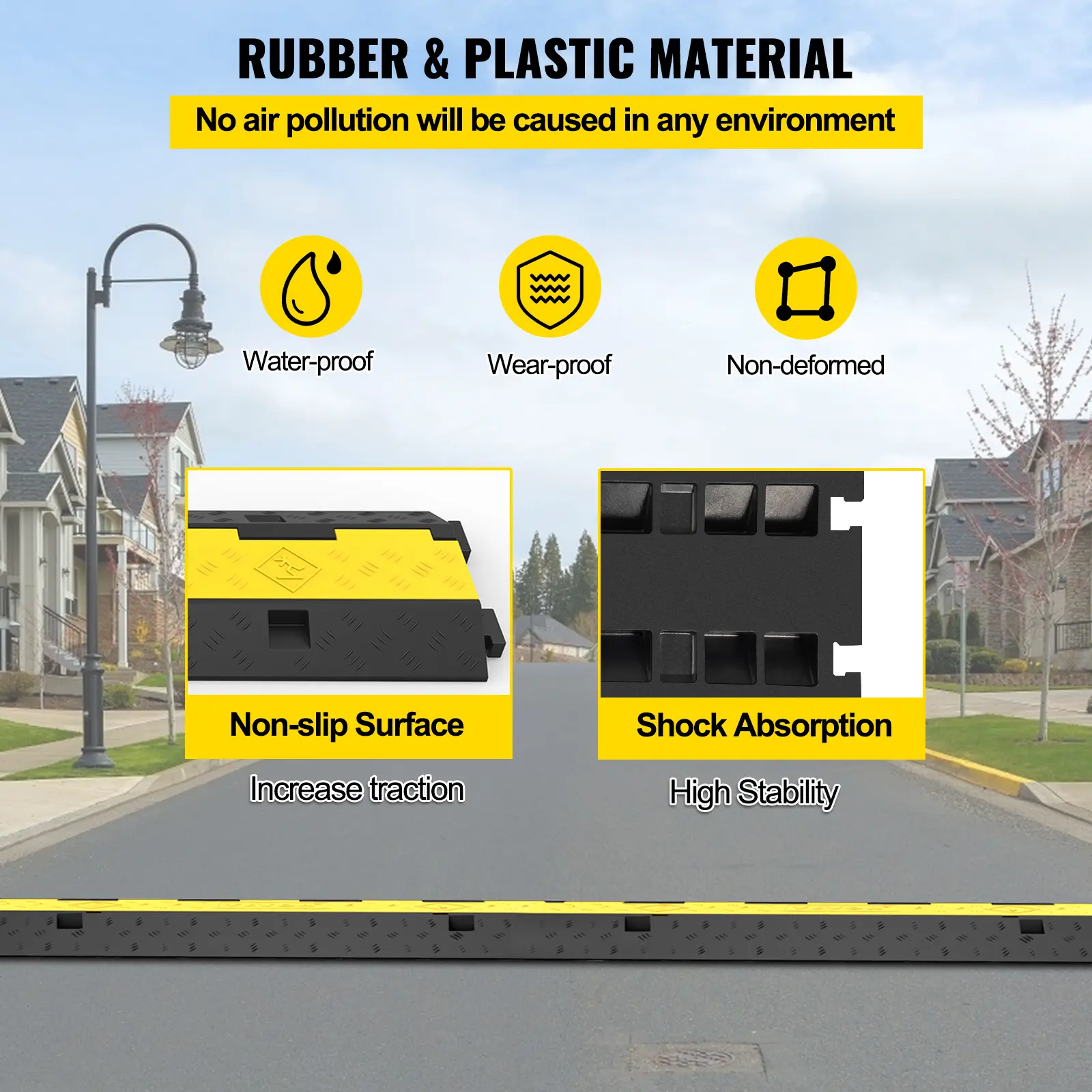 • Premium Slip-proof Rubber: Our cable protector cover is constructed with industrial-level rubber and a PVC cover, water-proof, wear-proof, and non-deformed for long-lasting usage. Flip-open design allowing you to place or remove cables quickly and easily. Texture strips on the surface for vehicles to pass without sliding; Bottom shock absorption has strong stability to control traffic speed while not damaging cars or roads.
