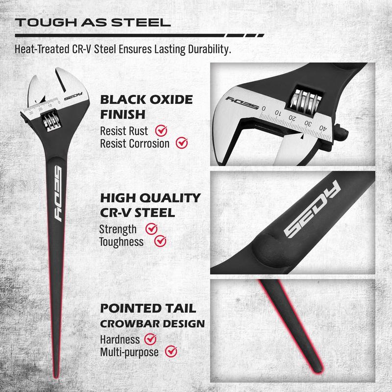 ·PRECISION MARKING - Featuring laser-engraved SAE and Metric scales, our adjustable wrenches offer high accuracy for a perfect fastener fit. The mirror-polished heads enhance visibility, making work more efficient and precise.