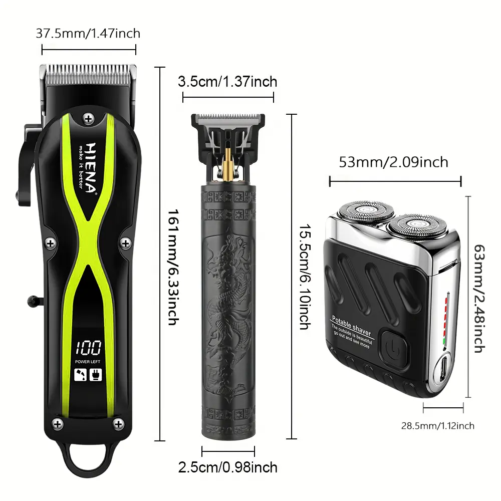 This is a very good hair clipper. There are three types in the box, all of which can be charged wirelessly. It's very suitable for taking on trips. The quality is excellent and the delivery is fast.