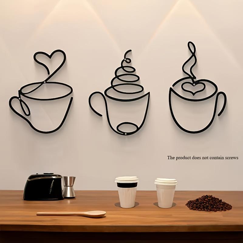 3-Piece Creative Coffee Wall Hanging Statue Decor, Wall Mounted Decor, Iron Art Craft for Cafe Interior, Home Decoration, Perfect Christmas Gift