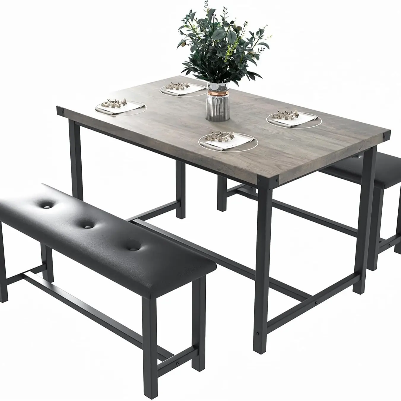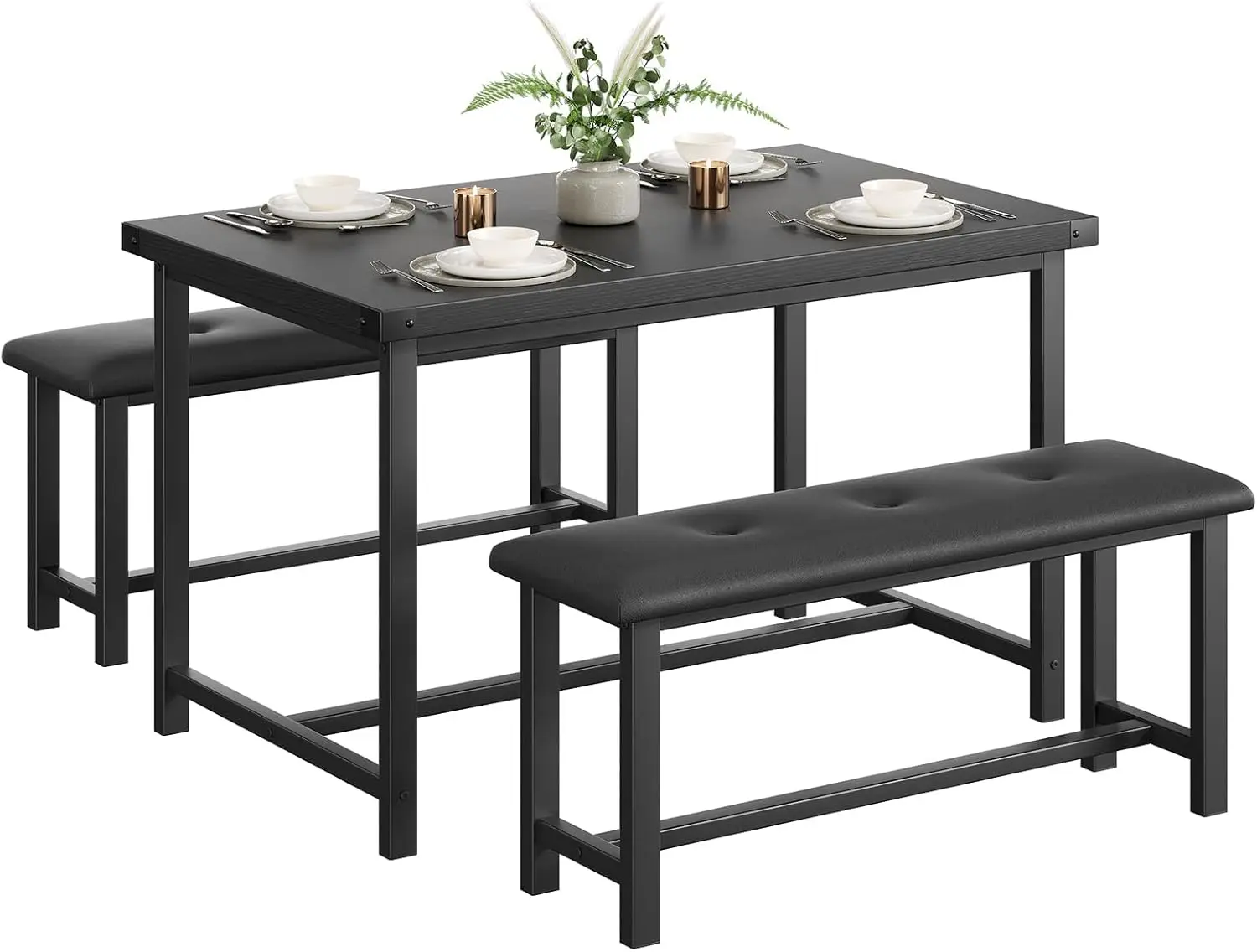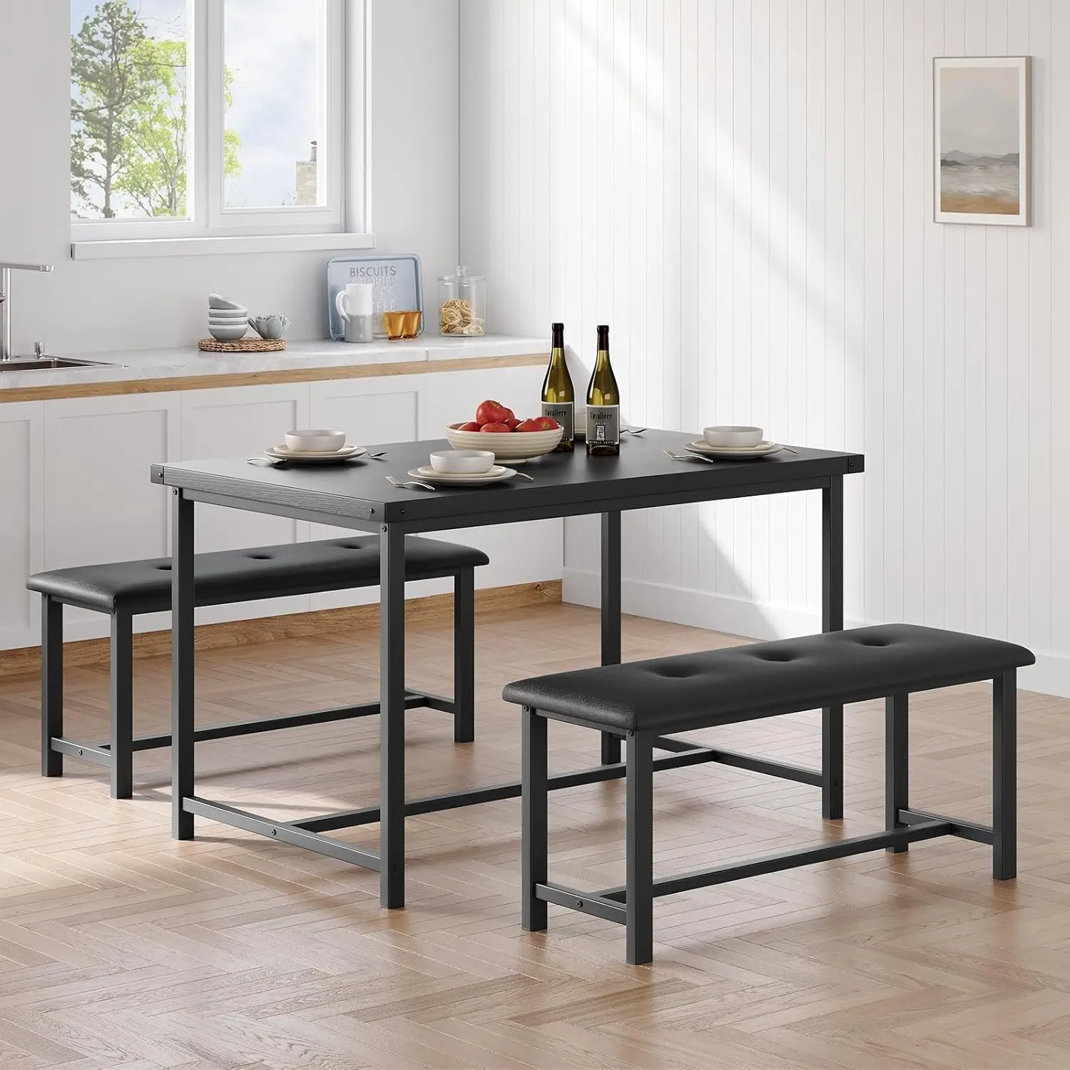 ·【Space-Saving Design】This three-piece dining table set is designed for small spaces and includes a 44.4x27.5x29.5-inch dining table and two 38.2x17.2x9.85-inch benches that can be fully stored under the table to maximize the use of limited space. It takes up no extra area and keeps your home clean easily, making it ideal for small apartments, apartments or compact restaurants.