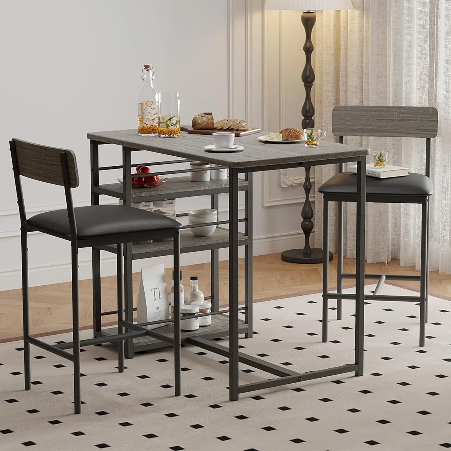 ·[Space‑Saving Push‑In Design for Small Homes]: The two stools slide completely under the counter‑height table to free up floor space and keep walkways open. An easy fit for apartments, studios, breakfast nooks, and compact kitchens while maintaining a clean, modern look.