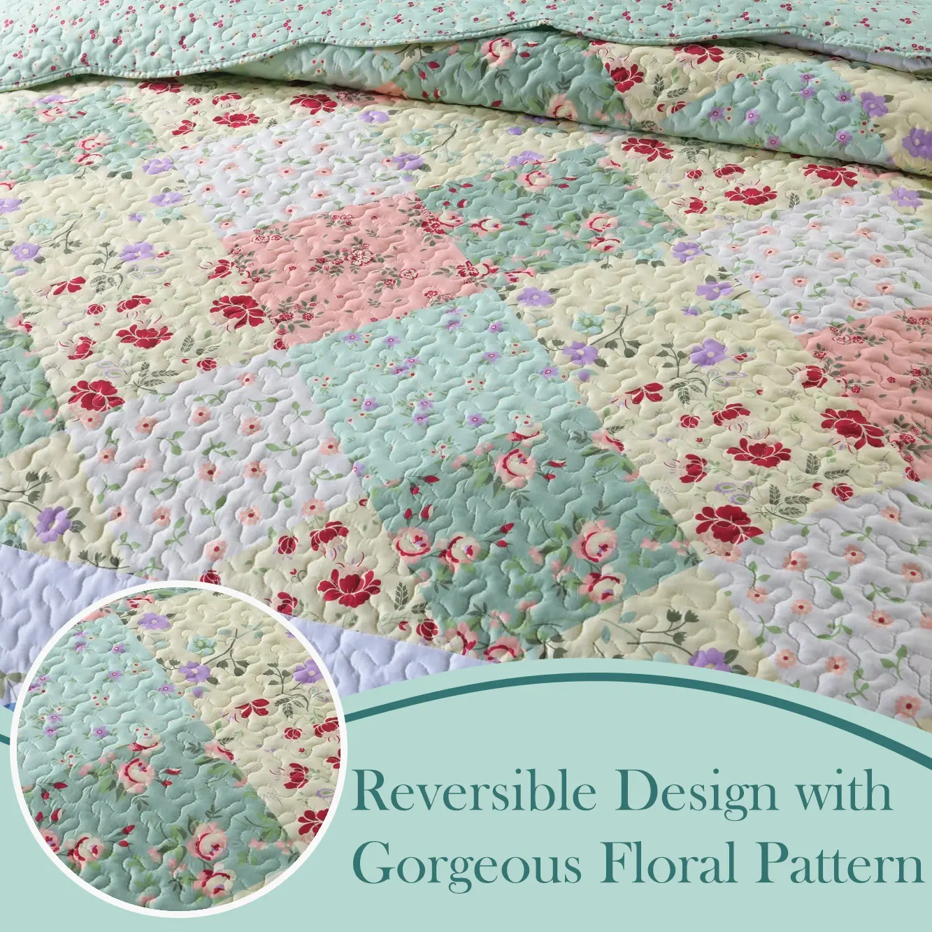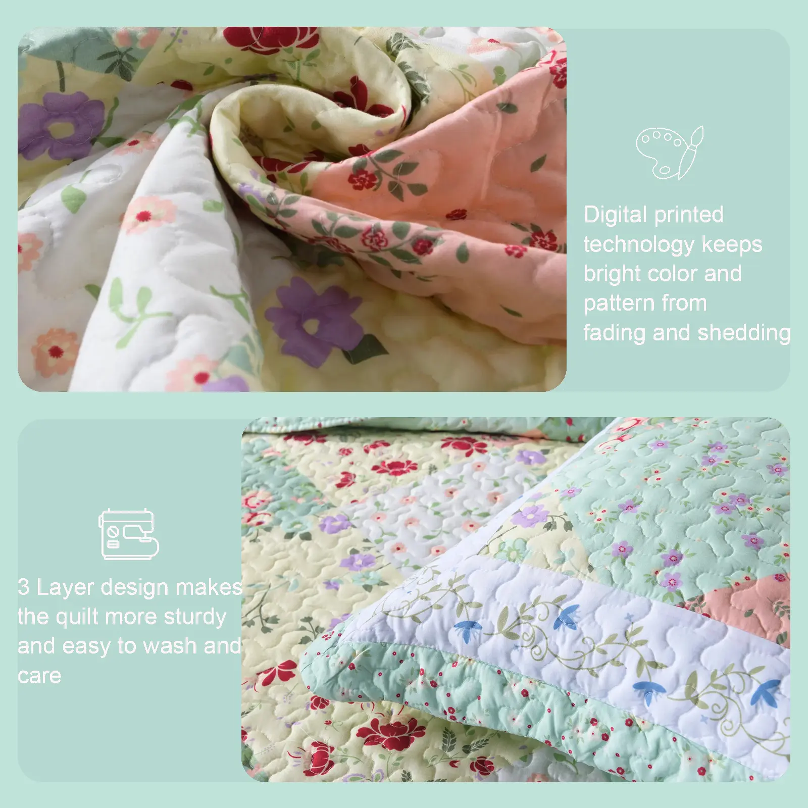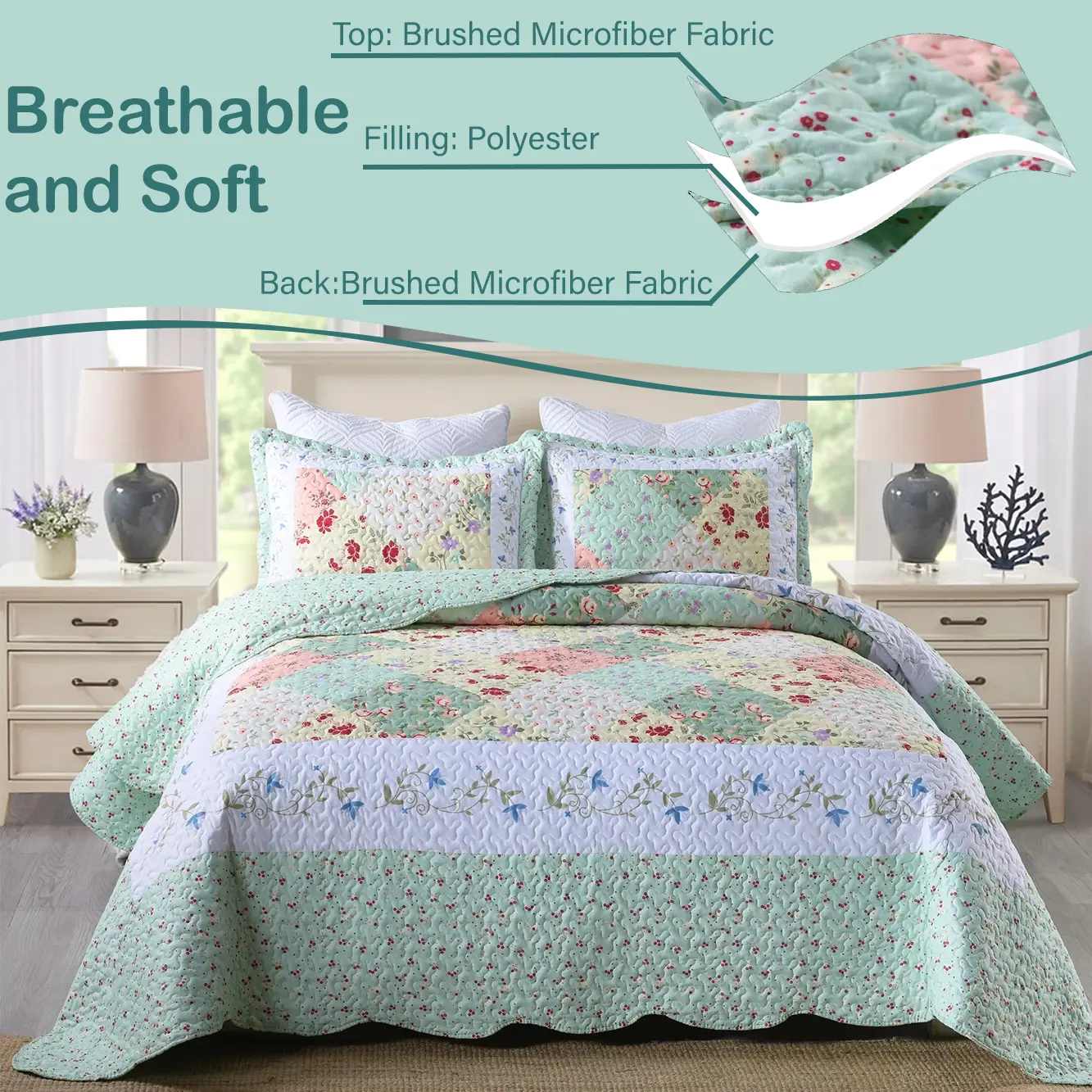 ·ACTIVE PRINTING: The 3 Piece Quilted Quilts Bedspread adopt pure natural mineral or vegetable dyes, featured high color fastness and fine pattern, non-fading.