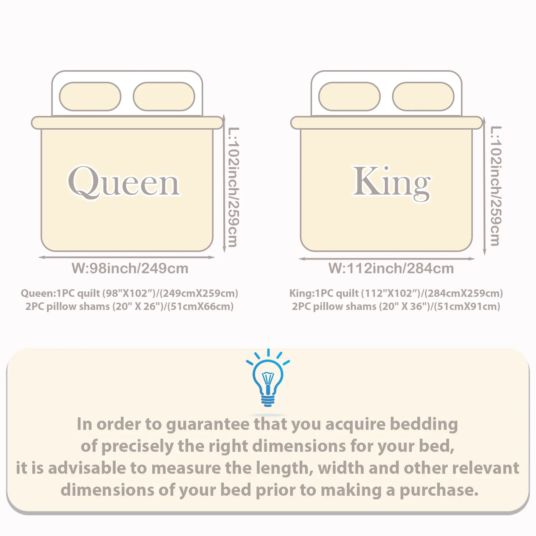 King: 1PC Quilt(112" X 102") 2PC Pillow Shams(20" X 36")