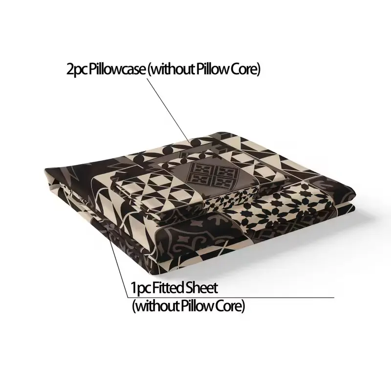 3-Piece Geometric Patchwork Bedding Set, All-Season Mattress Protector, Soft Breathable Deep Pocket Sheet & Pillowcases, Bedroom Decor
