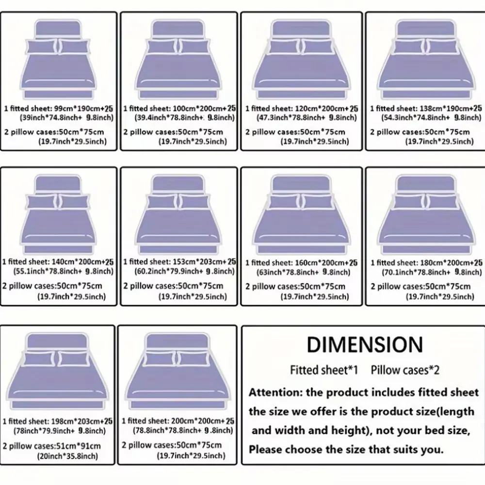 【Complete Set】: Includes 1 bed sheet and 2 pillowcases, providing a complete bedding set for your bedroom.