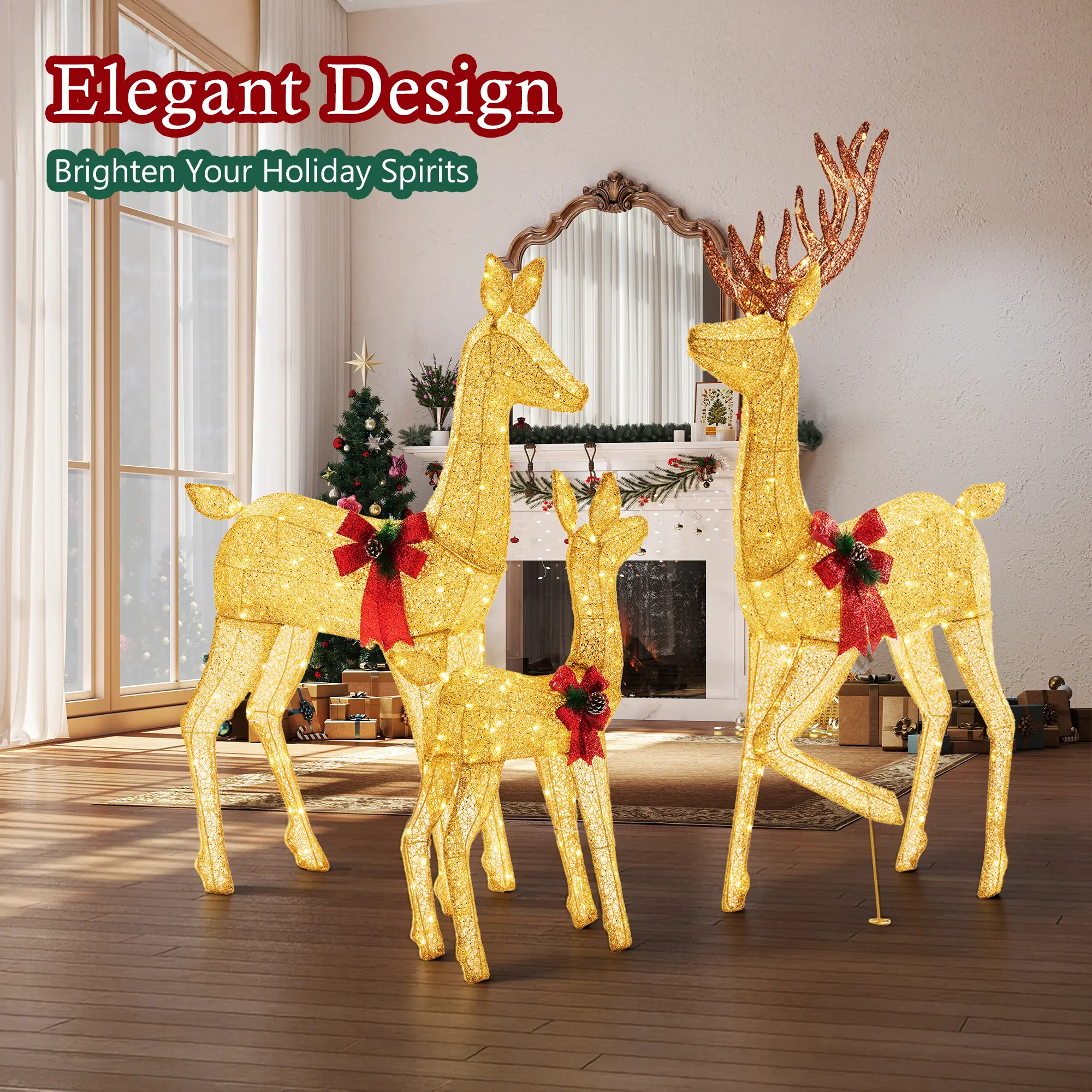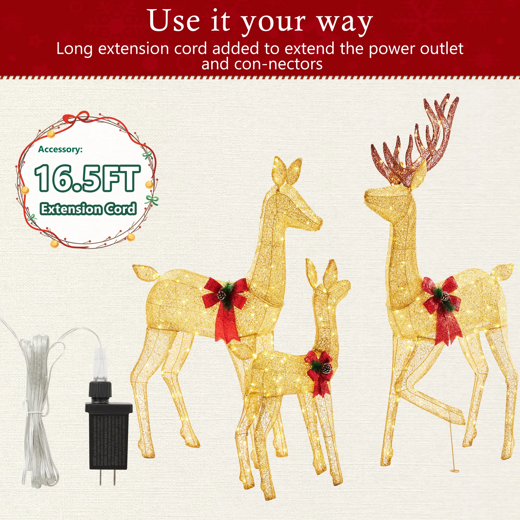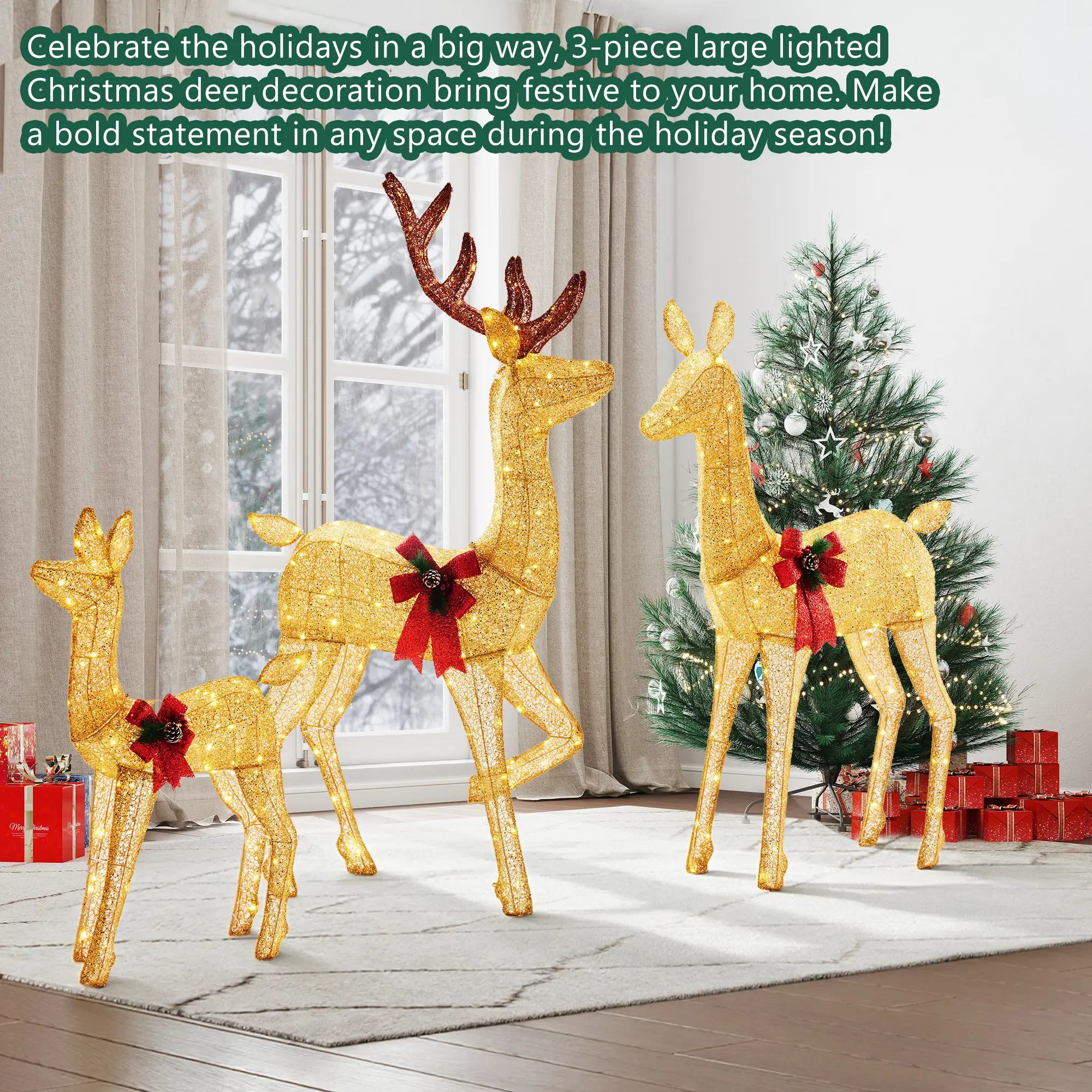 3-Piece Large Lighted Christmas Deer Family Set - 5.3Ft with 360 Bright LED Warm Lights Standing Reindeer, Lawn Decor, Indoor Outdoor Front Yard Holiday Decoration, Stakes, Zip Ties, Gold