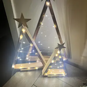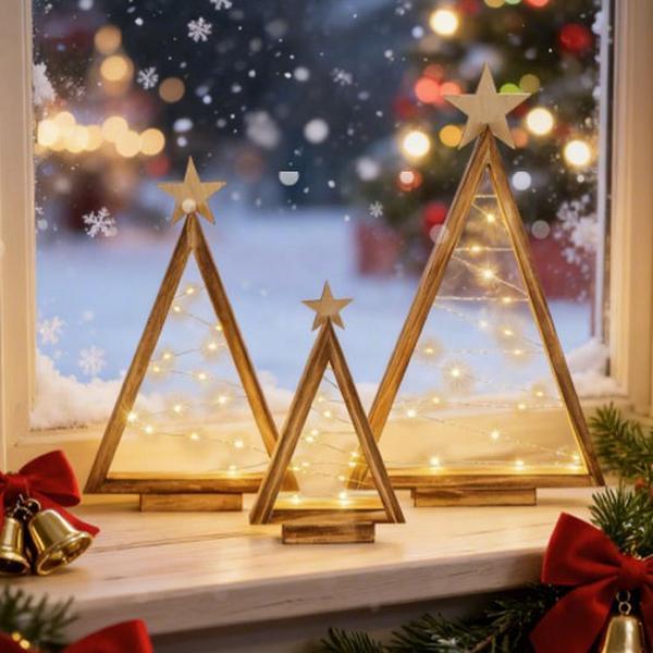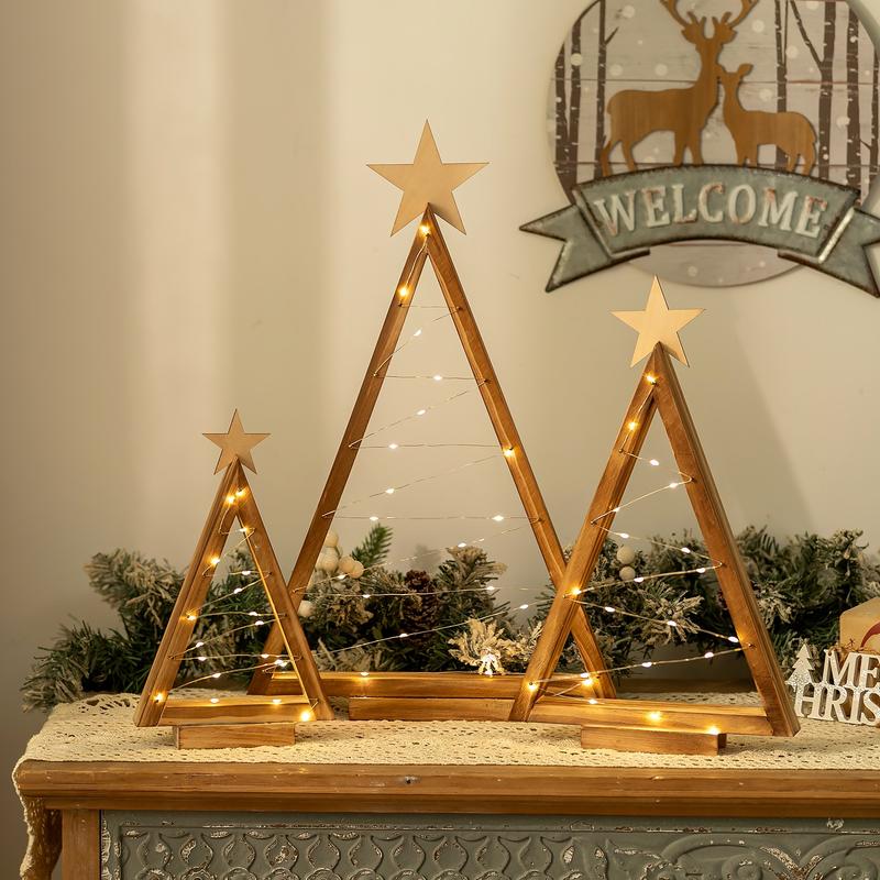 Simply place these decorations on your tabletop, fireplace mantel, or shelf. They are versatile and easy to integrate into your existing decor. Let these wooden Christmas trees brighten your home this season with their festive glow. Enjoy the warmth and beauty of these rustic farmhouse decorations.