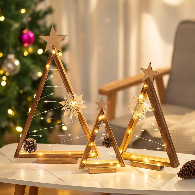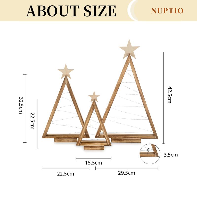 ✨ Transform your home with these 3 Pcs Lighted Christmas Tabletop Decorations! Perfect for rustic farmhouse decor, these wooden tabletop Christmas trees add a warm, inviting touch. Ideal for table, fireplace mantle, or shelf decor, they bring holiday cheer effortlessly. Each piece is designed to enhance any space with its charming, natural wood aesthetic.