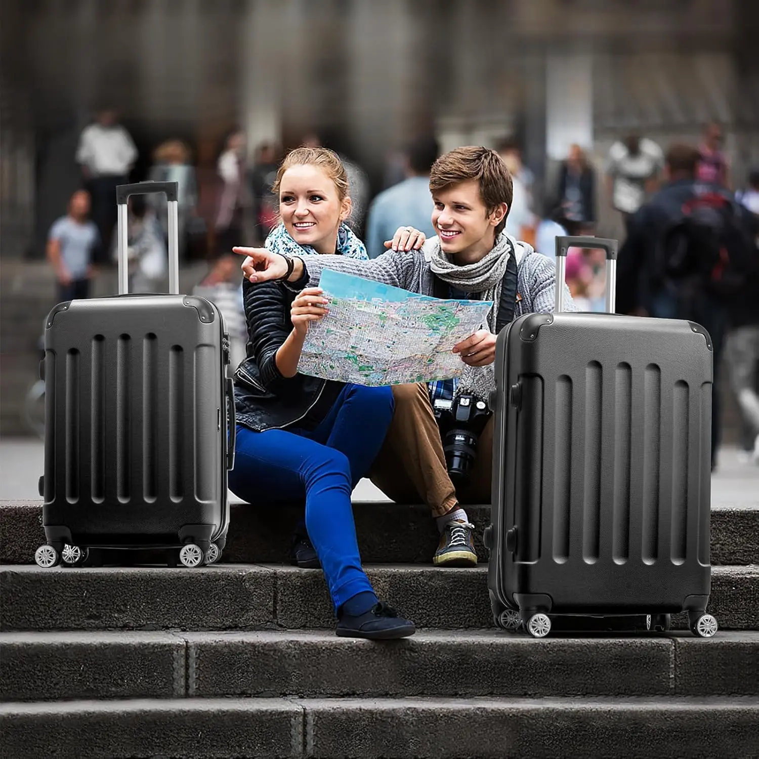 The two small suitcases were great, but the large one was very hard to use once packed. I had to drag it behind me and the handle kept sliding down. I honestly wish I could get my money back, but I already used it. Would not recommend for travel, especially if you’re in a hurry