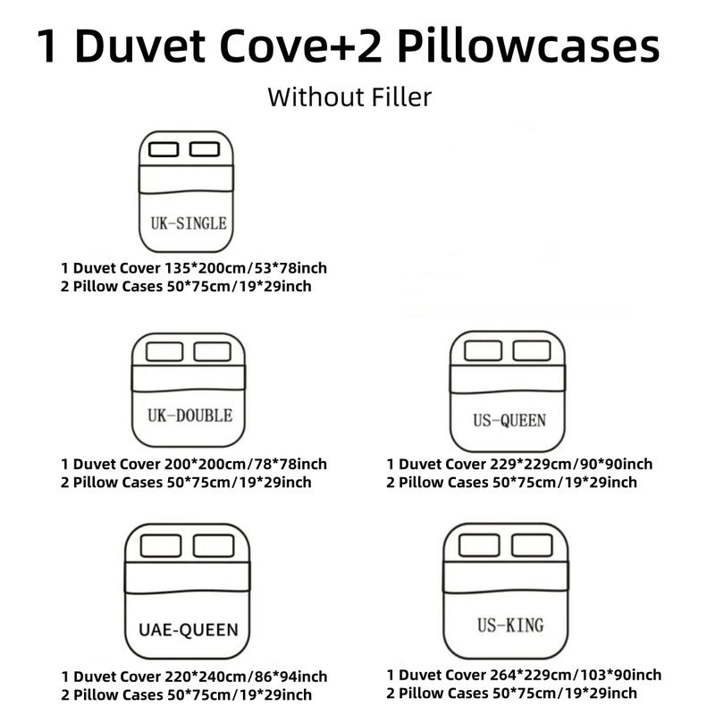 【Complete Set】: This 3-piece set includes a duvet cover and matching pillowcases, providing a coordinated bedding solution.