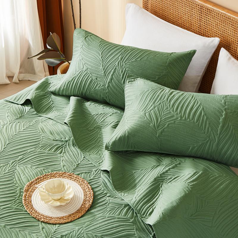 Featuring a soft and calming leaf-patterned quilted design, this reversible bedspread set brings a natural, relaxed look to your bedroom. The subtle leaf texture adds depth without feeling busy, making it easy to match with modern, boho, farmhouse, or minimalist decor. Perfect as a decorative bed cover, lightweight quilt, comforter alternative, or coverlet for year-round use.
