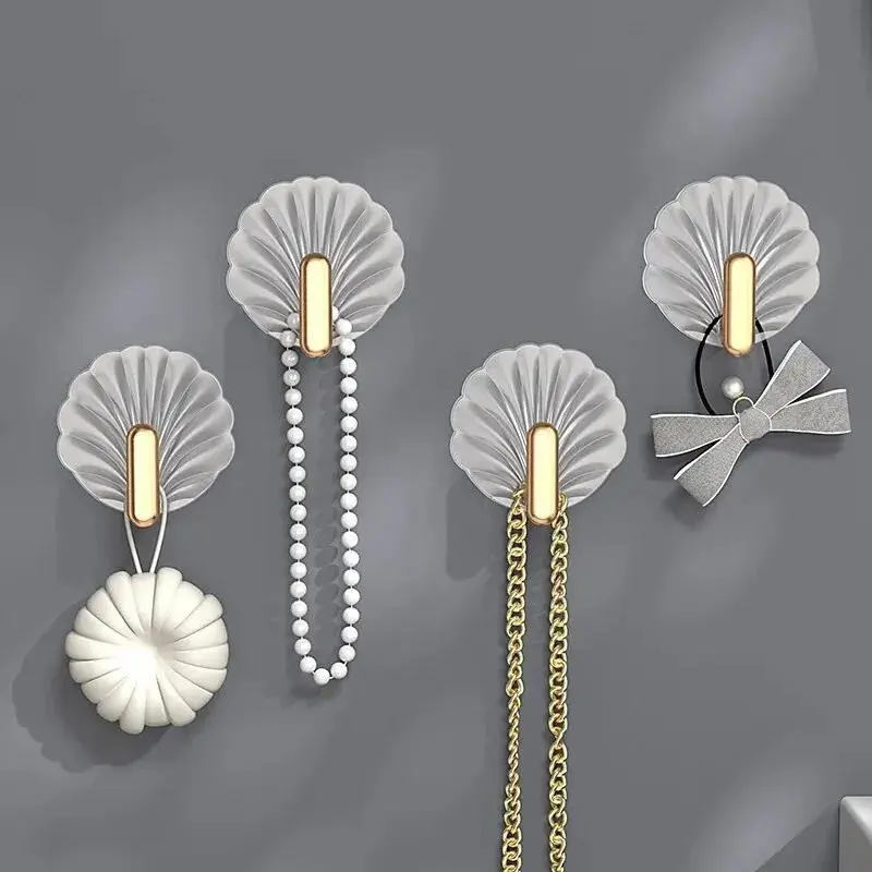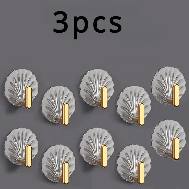 3Pcs Shell Shape Wall Mounted Hook Kitchen Bathroom Multifunction Punch Free Hooks Coat Hanger Home Decoration Paste Style Hooks Hook porch bedroom strong adhesive hook multi-functional seamless transparent hook high load free punch hook