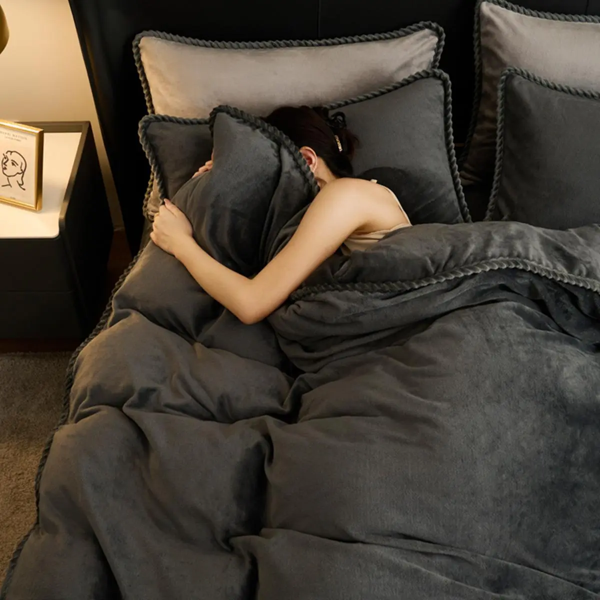 So boujee, I’m living my soft girl life with this duvet set, my bed is Queen size, it’s soft and high quality. Just add your comforter inside and wala you have a nice fluffy duvet or you can put it on your bed as is, it’s reversible and such a good price, definitely getting the Grey.