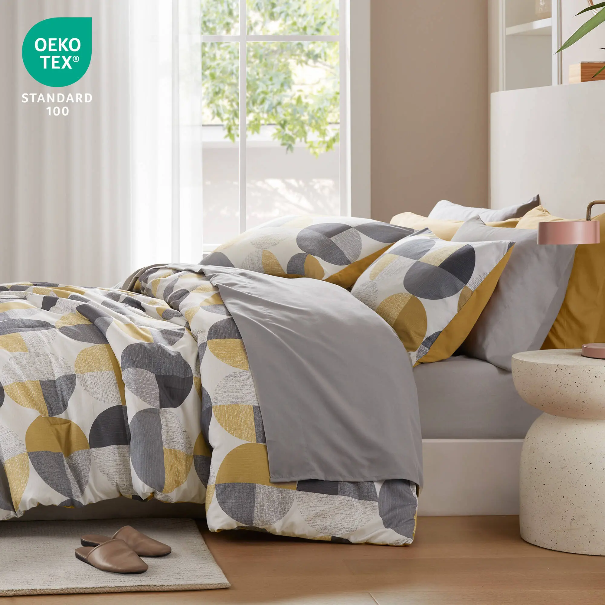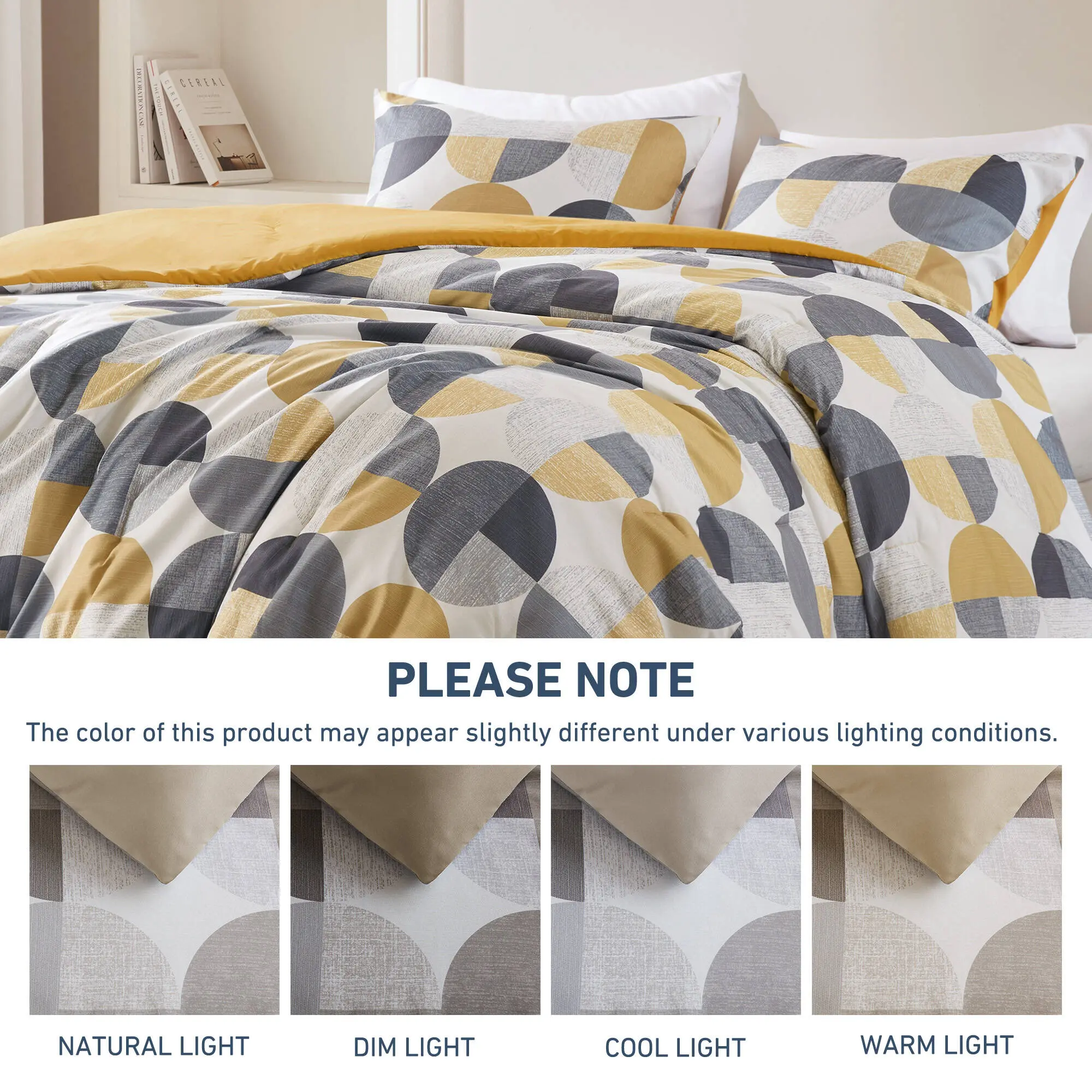 • 🌞 This bedding set features a stylish three-tone print, combining mustard yellow and grey. Perfect for all seasons, it offers warmth and coziness. The set includes mustard yellow and grey colors, adding a touch of style to your bedroom.