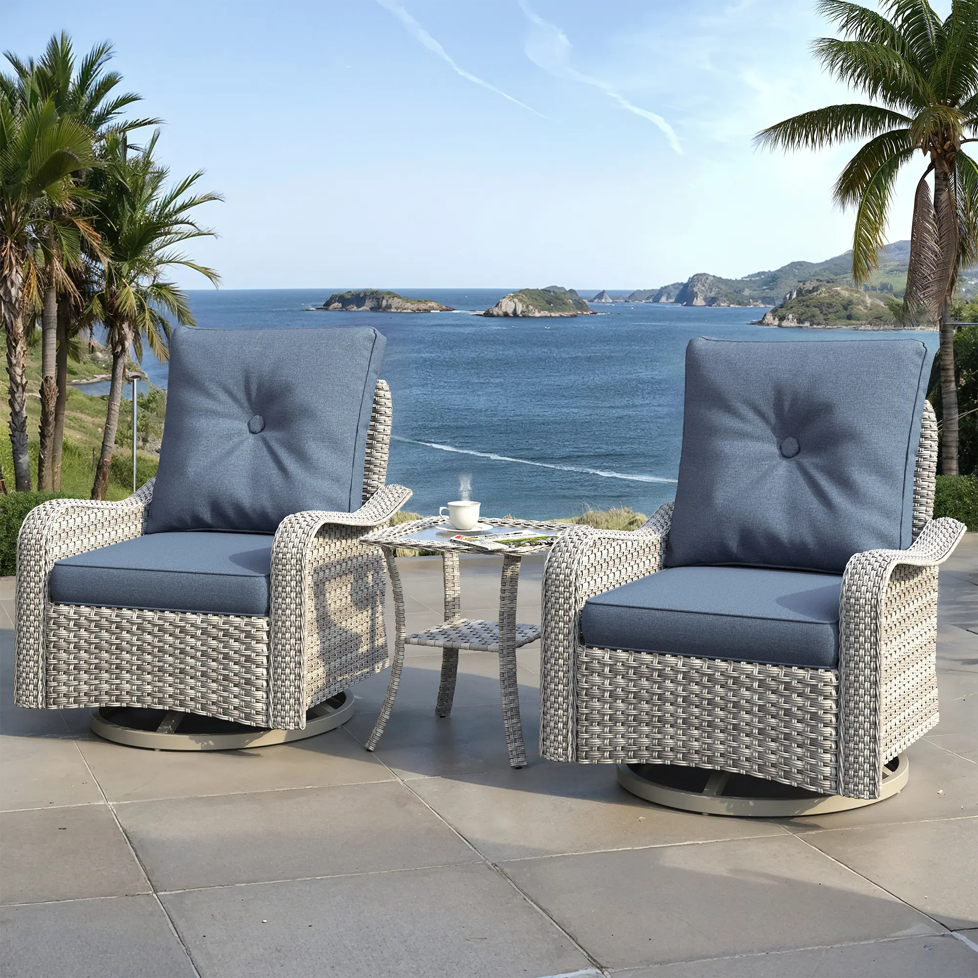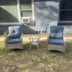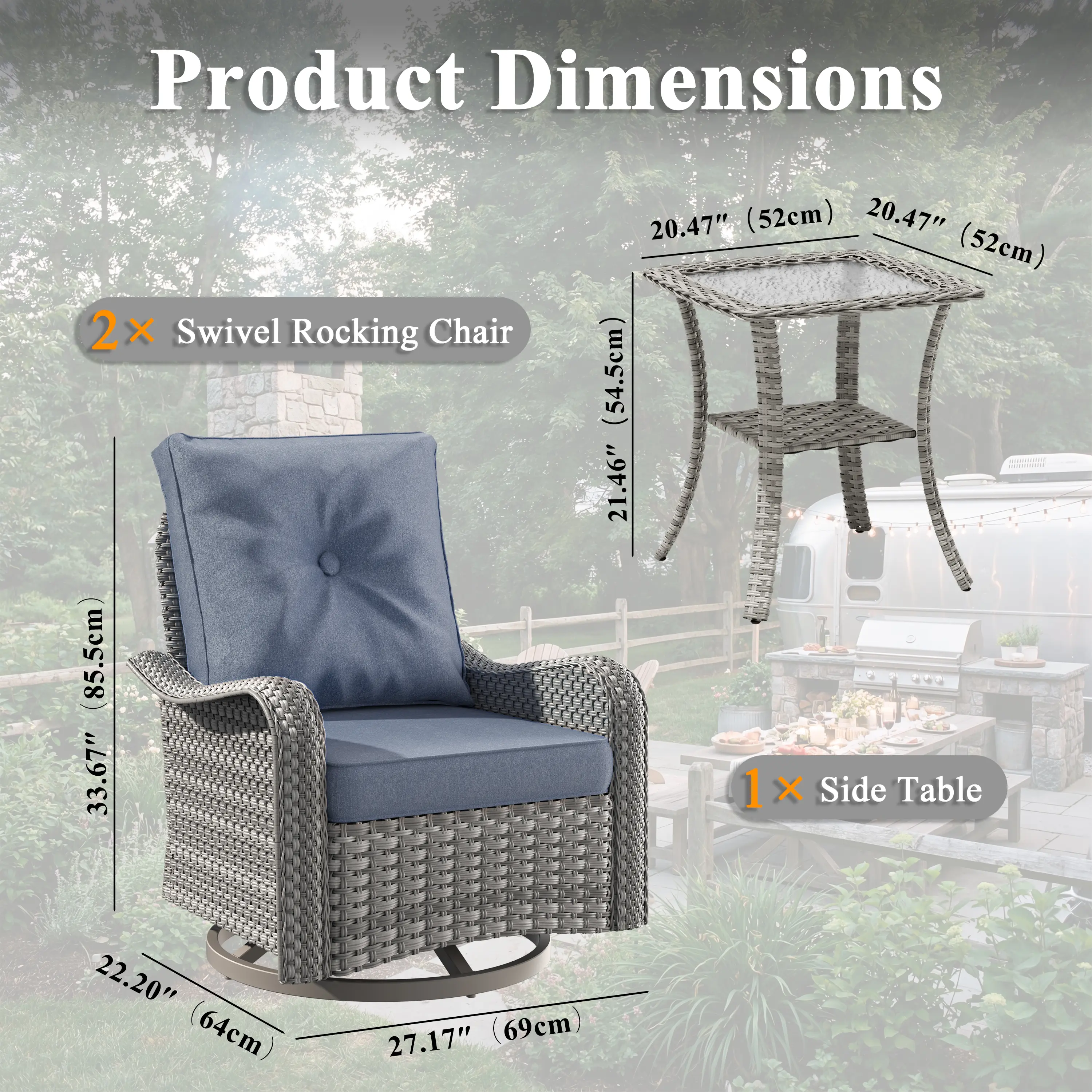·Ultimate Comfort and Support: Immerse yourself in the luxury of our 3-piece patio chair set. It features a generous 4-inch thick, high-density cushion that provides exceptional, long-lasting support and retains its shape over time. Wrapped in a soft, skin-friendly fabric, the ergonomic design offers a supremely comfortable seating experience, making it the perfect spot for relaxation or entertaining in your backyard.