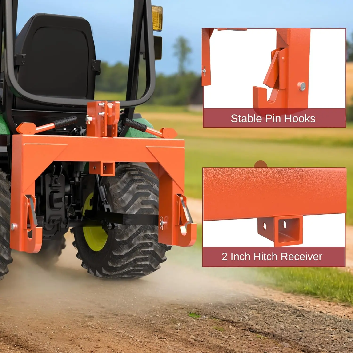 ·3-Pt Attachments: This hitch features 3-point attachments, allowing for secure attachment to various surfaces. The 3-point design ensures a strong hold, making it ideal for heavy loads.