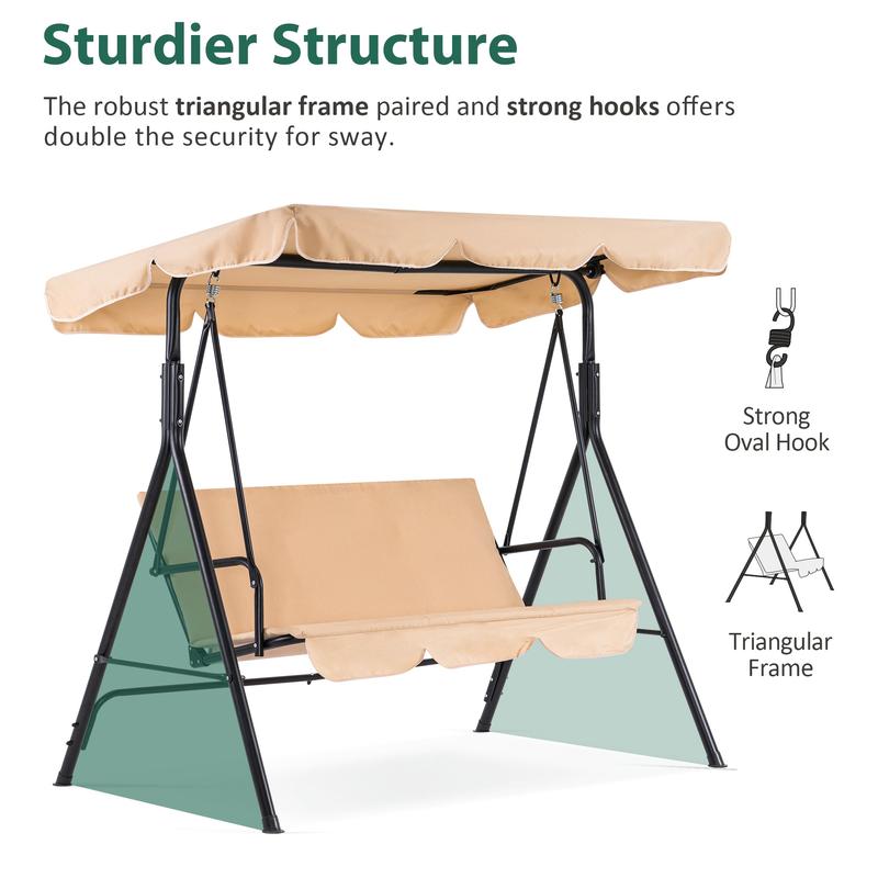 ·【Stable and Durable Structure】MCombo patio swing has a sturdy triangular frame, made of a sturdy steel frame, which can ensure a strong load-bearing capacity of up to 580 pounds. The upgraded foot and spring hook provide you with stability and safety. The swing can swing smoothly. 4 plastic non-slip mats, safer to use in rainy days, and prevent scratches on the floor.