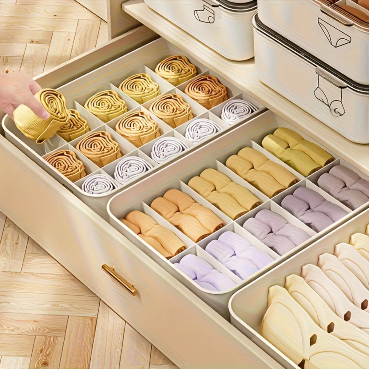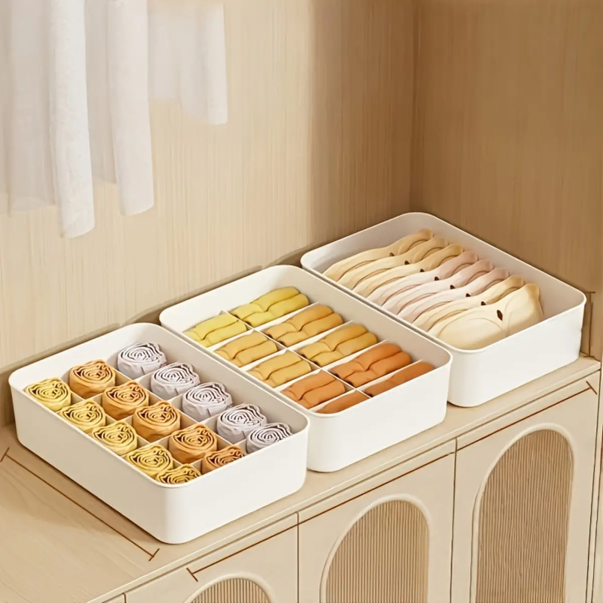 3-Section Underwear and Socks Organizer Box, Covered Closet Drawer Storage Container for Bras, Underwear, Socks and Shorts, Stackable Space-Saving Wardrobe Organizer for Dorm Room and Home