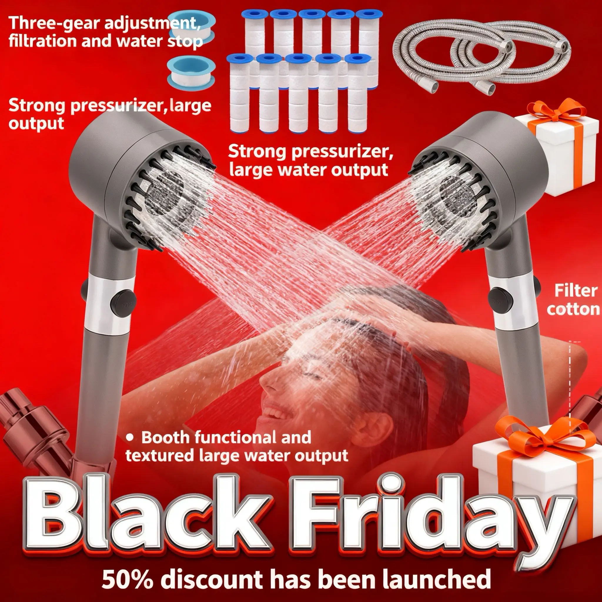 This item was horrible. It's attached by a sticker and not able to he fully installed. It fell on my child. It's not a working shower head