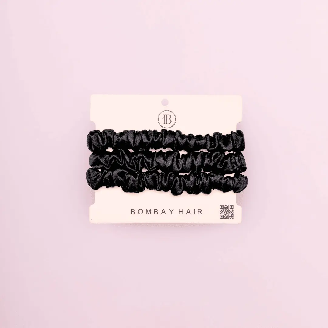 3 Silk Scrunchies (Skinny) - Black