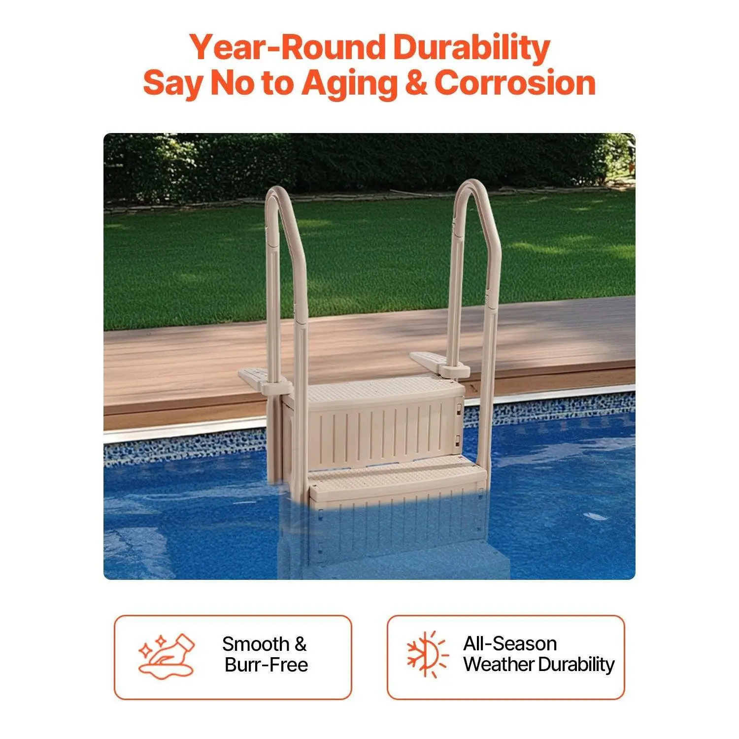 ·Sturdy & Built-to-last Design: Made of PE material, this swimming pool stair is built to withstand all seasons and is fearless to the harsh effects of outdoor sun exposure and aging. You can trust this ladder to avoid accidents and provide durability. The ergonomically designed handrails with rounded edges allow for a comfortable and secure grip