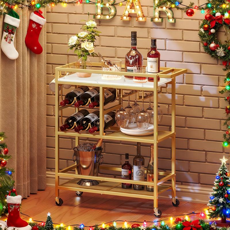 ·Multipurpose Application: The open design makes this rolling bar cart multifunctional to organize more. As a food cart for daily meals, a serving cart for outdoor parties, or a storage rack for snacks in the living room, it will be a reliable companion to organize everything in a tidy way.