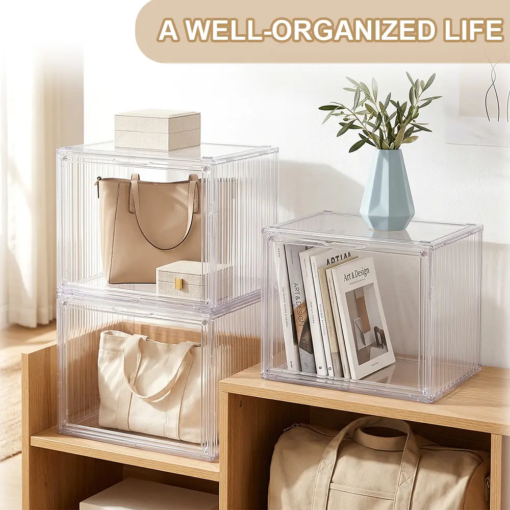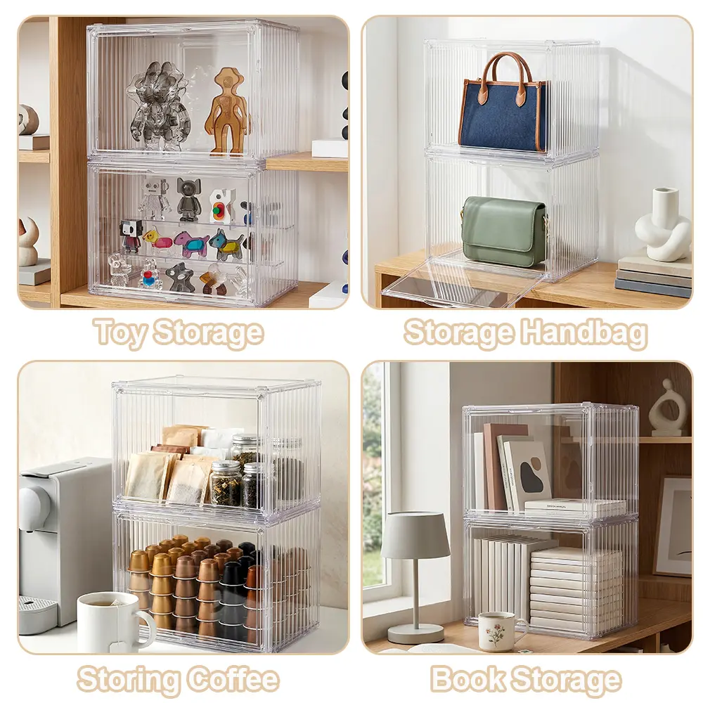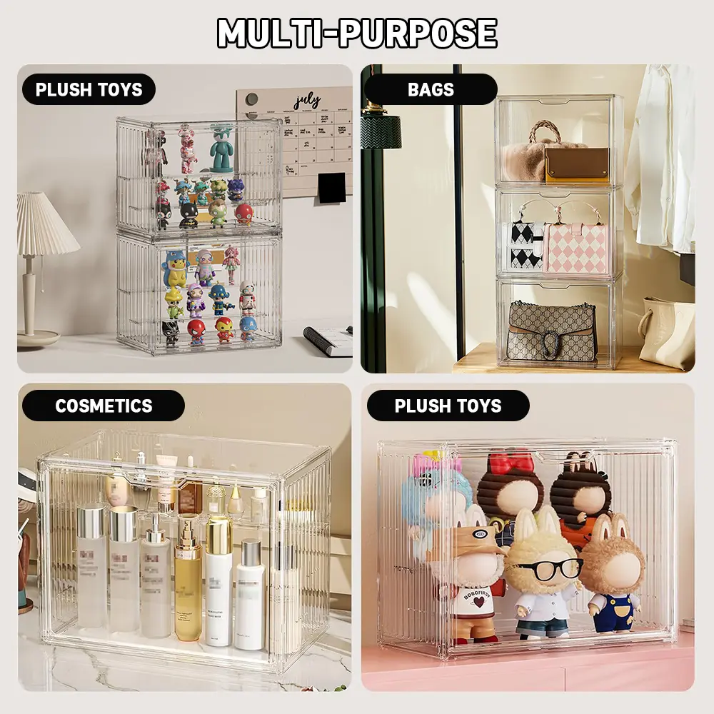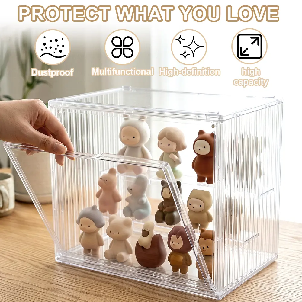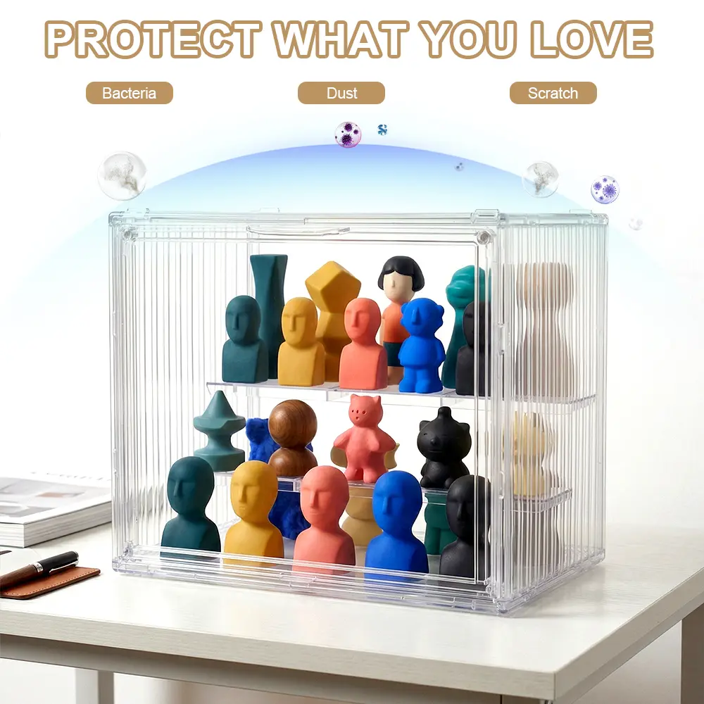 【Visible beauty】3 Tiers Clear Acrylic Display Case,Dustproof Step Shelf,Stackable Display Box for Figures Showcase Anime Cars/Jewellery/Bag Household Storage Box for Idle Items