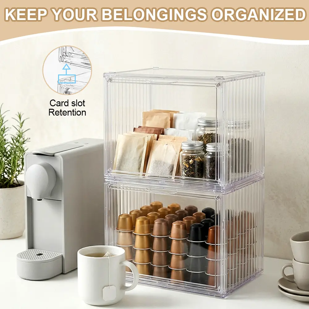 【Junk Drawer No More】1-Tier Magnetic Doors Narrow Slim Storage Cabinet Tea/Water Cups Skincare Products Coffee Mug Snacks Transparent Storage Box Daily Essentials Storage