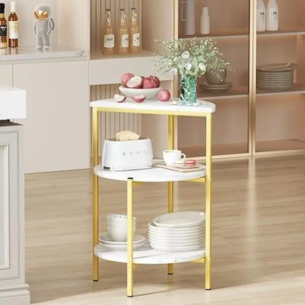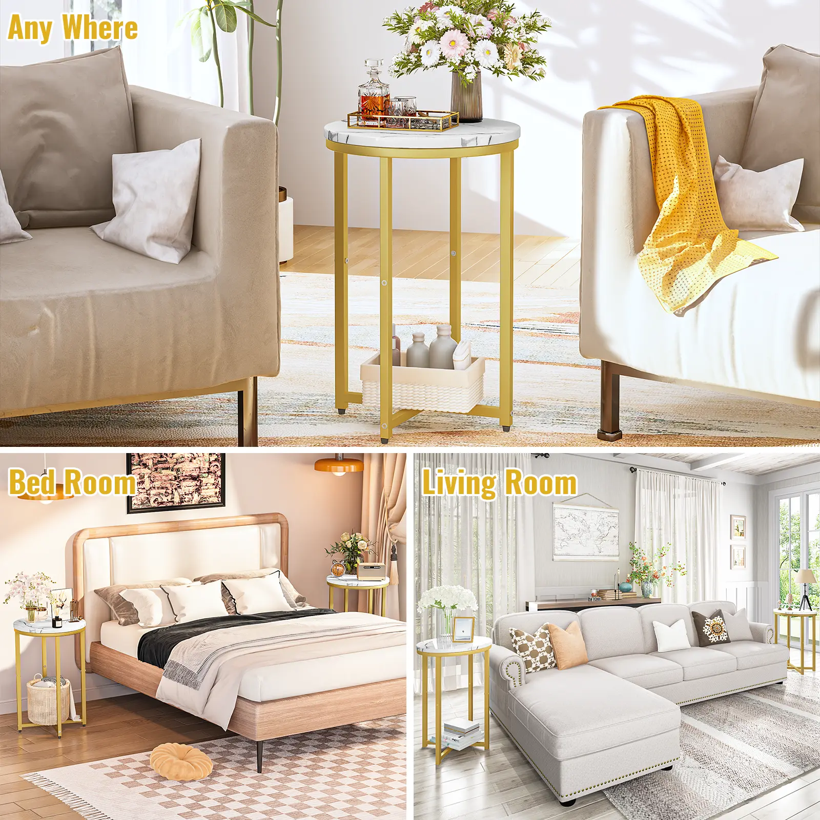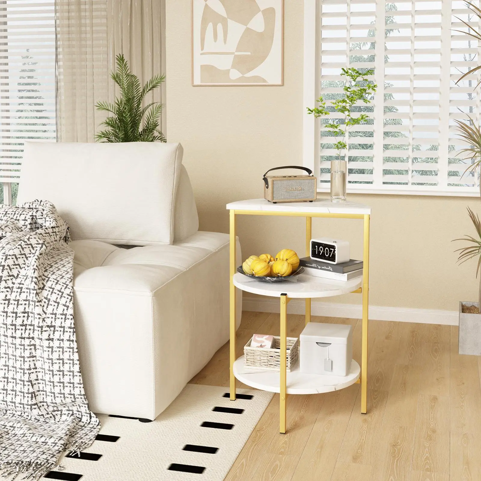 【SMALL ROUND TABLE 】- This 3-tier end table is a space-saving and lightweight design,works perfectly as a greenery plant,side table, bedside table, coffee end table, sofa snack table, reading table, art pieces display table, nightstand,Perfect for the apartments.