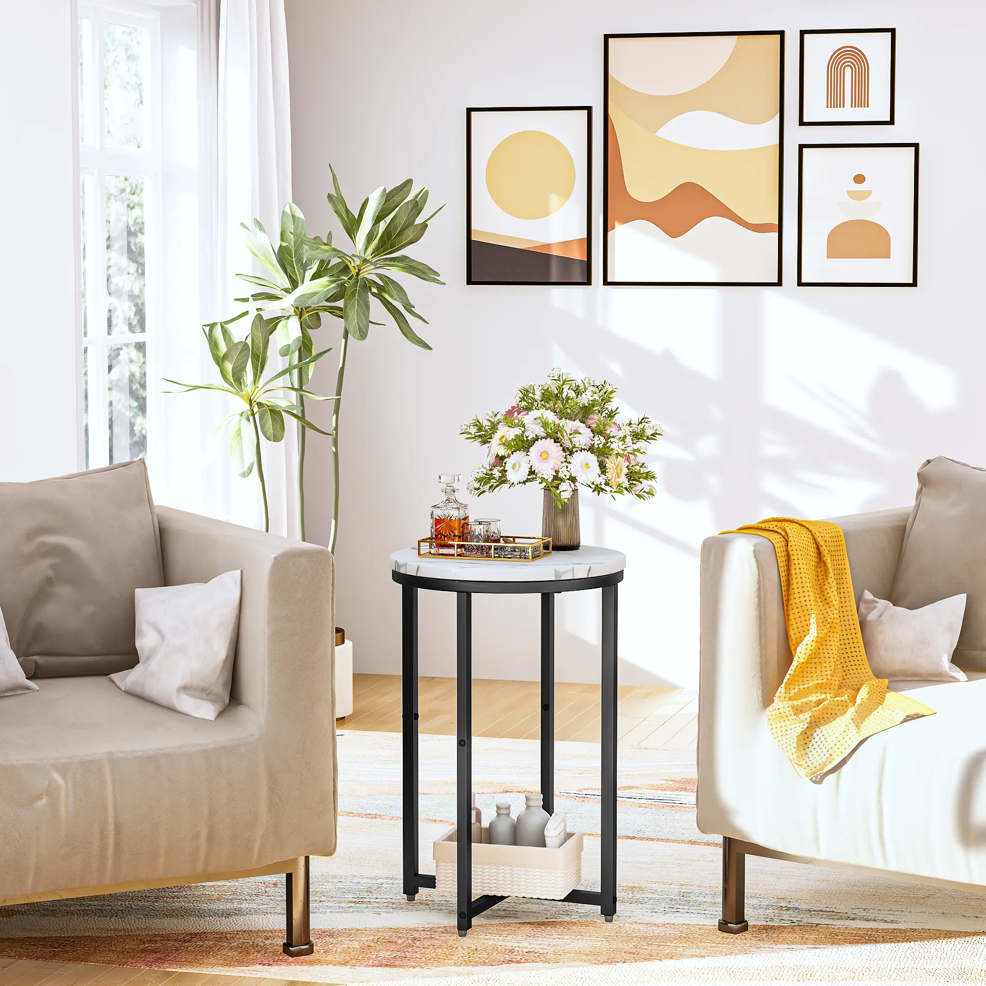 【DURABLE & STABLE】-A smooth frame and table top surface allow for effortless maintenance, so you can keep the table looking its best for years to come,Designed with non-marking foot glides, this side table protects floors from scuffs, indentations, and other potential damages.