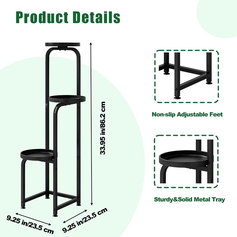 • The Indoor Plant Stand features 3 trays, measuring 16.5(L) x 12.87(W) x 33.94(H) inches.It's perfect for displaying plants and knickknacks.This multi-tier design offers ample space for your flower pots while adding a modern touch to any room.Enhance your living space with this stylish, functional piece.