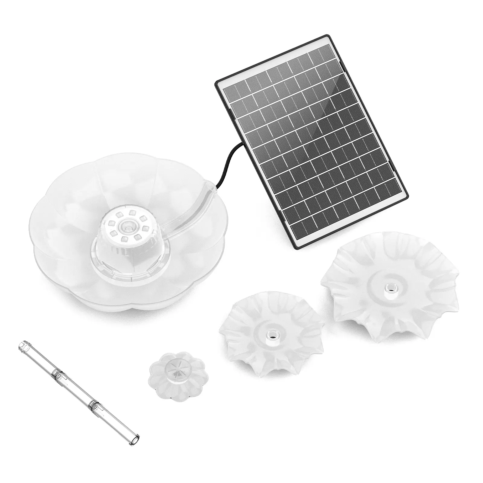 ·【Environmentally friendly energy】The efficient 6.5W solar fountain starts working quickly on sunny days. Built-in battery, automatically stores solar energy. This truly white solar water pump makes full use of solar energy and is very environmentally friendly.