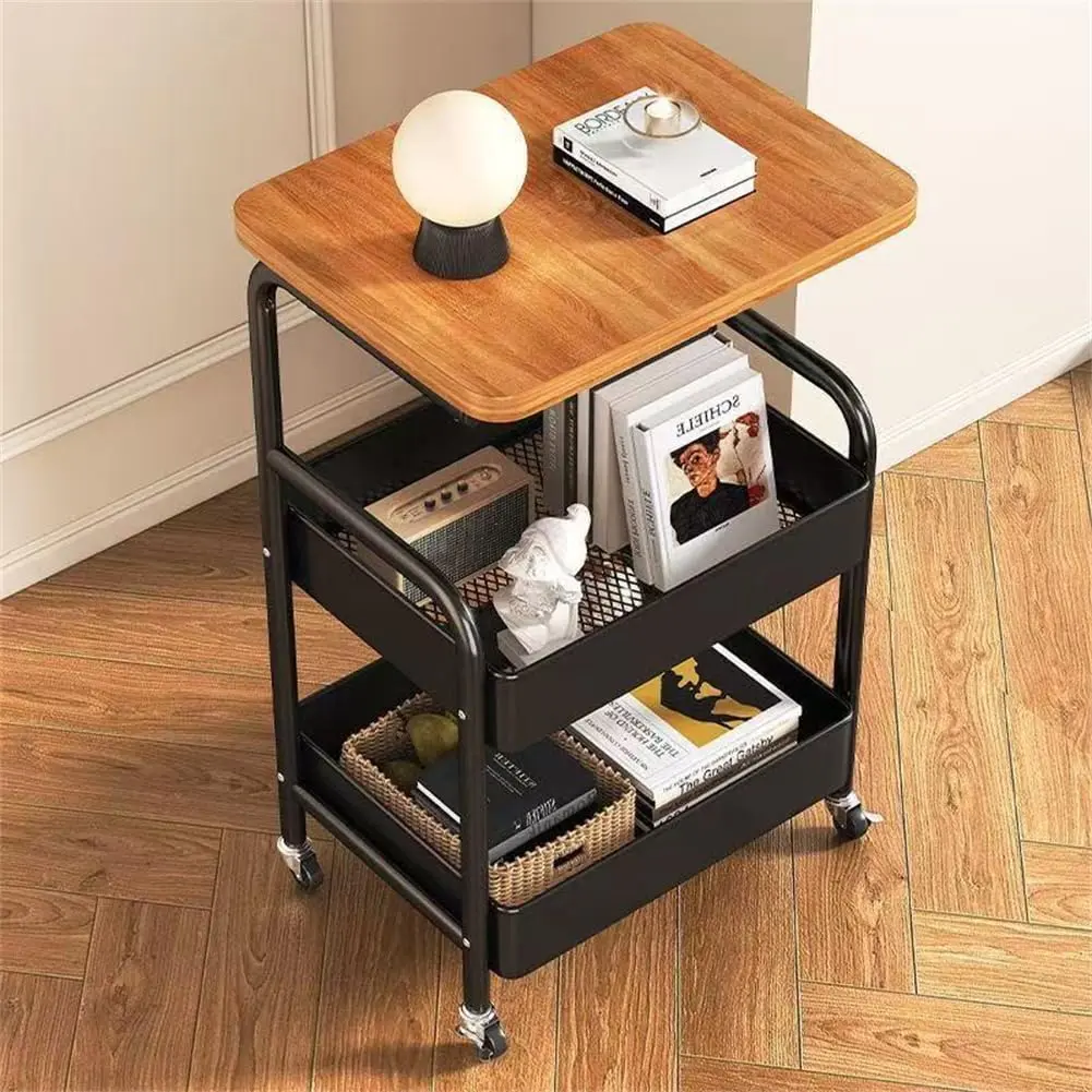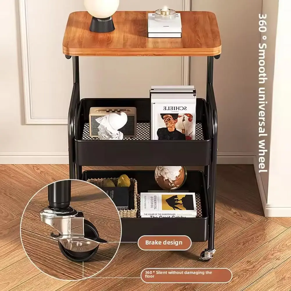 ·1.Sturdy 3-tier rolling cart made from high-wear-resistant metal and MDF tabletop, each tier holds up to 22 lbs.