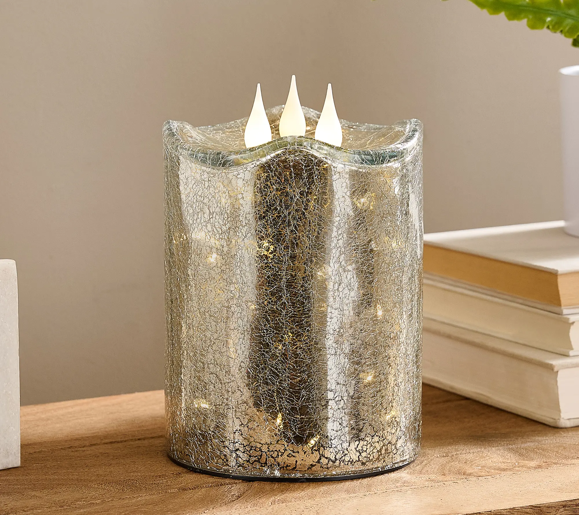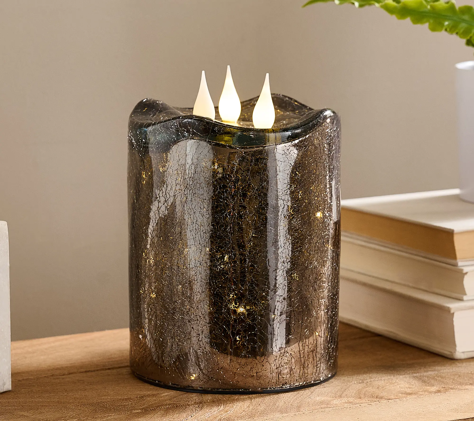 Holiday, harvest, or everyday? Give your space a glow up with this three-wick flameless crackle glass candle -- you'll find ways to work it in, whatever the season or reason.
