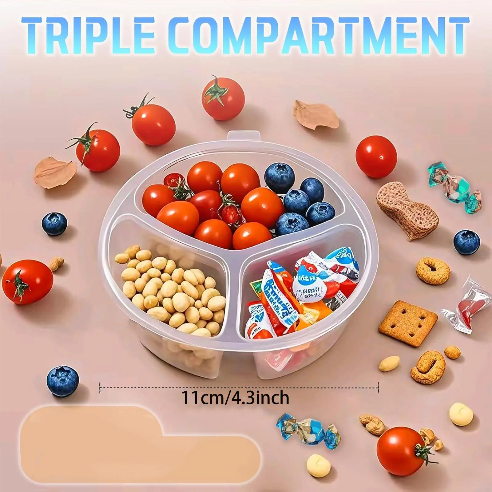 [Three Compartments]: Our snack box features three separate compartments, allowing for organized storage of various snacks and sauces.