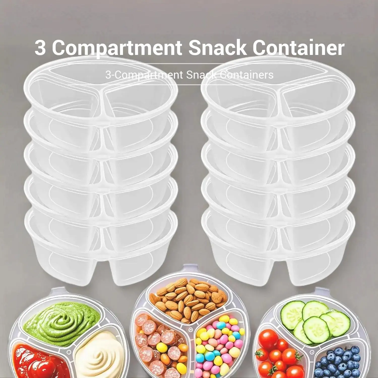 5. 30/50pcs 3 Compartment Snack Containers, Reusable Sauce Dipping Containers, Stackable Lunch Box, Insulated Meal Prep Containers for Kids & Adults, Portable Food Storage, Snack Pack, Kitchen & Office Use Lids Utensils Clear