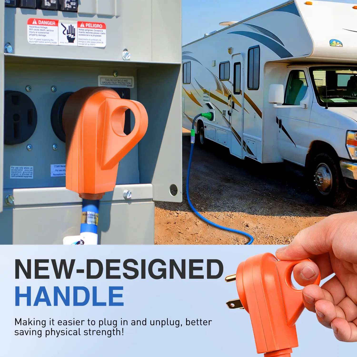 ·Superior Quality: Adopts high heat and durable heavy-duty ABS plastic housing, Constructed with high quality terminals and blades, inner strain relief clip and outer bushing firmly secure cable,ensuring high conductivity and a solid, safe construction for replacing 30 AMP plug on extension cord.
