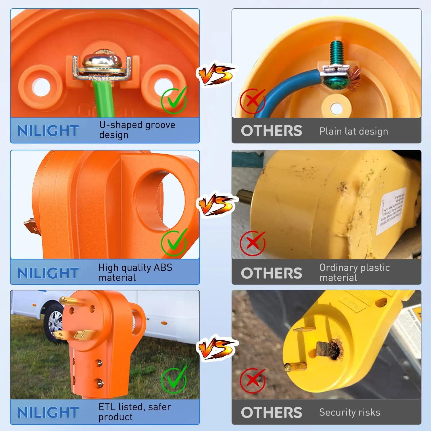 Our RV replacement plug pass ETL certification, which follows the same safety standards as Underwriter Laboratories or UL.