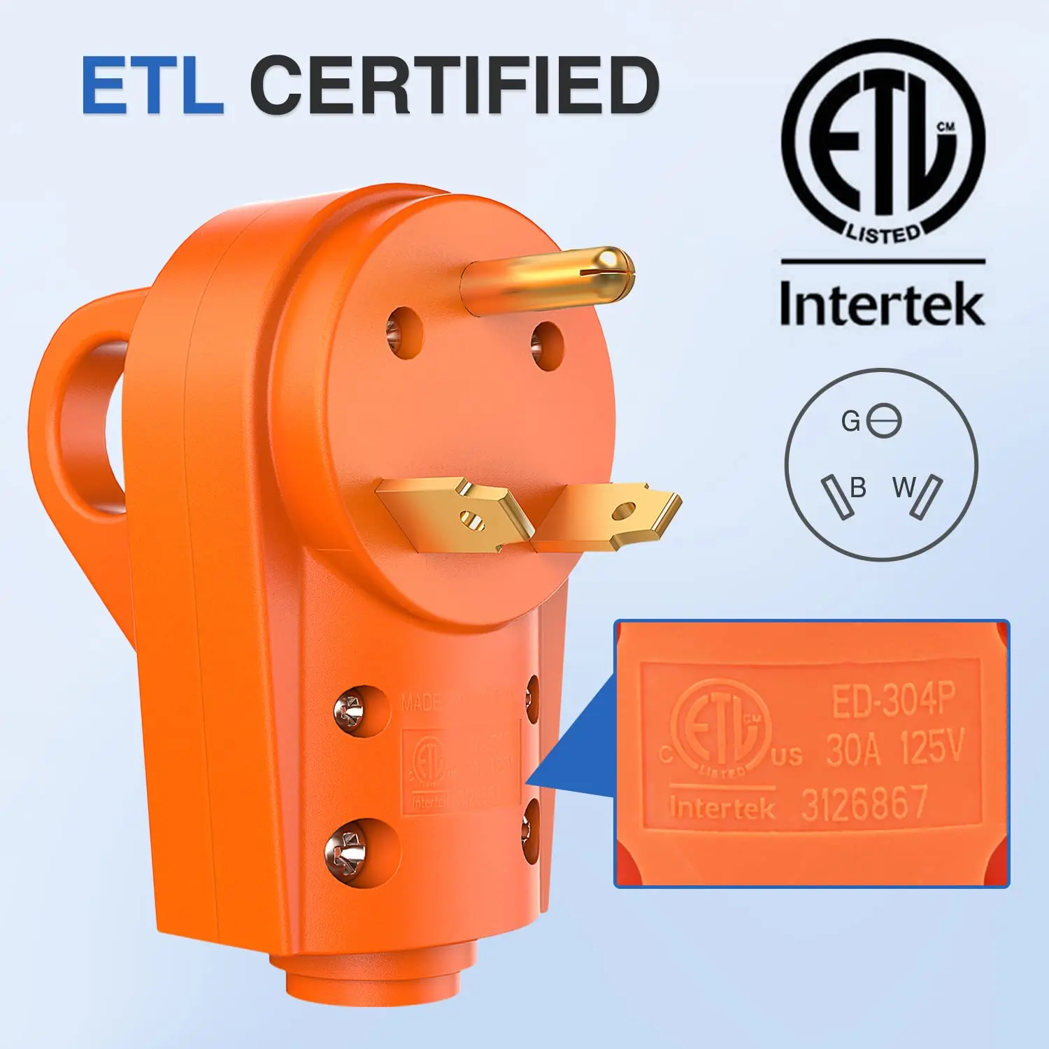 ·ETL Certified: Our RV replacement plug has been tested at an ETL laboratory and found to meet all applicable Standards for Safety published by relevant NRTLs. ETL certification follows the same safety standards as Underwriter Laboratories or UL.