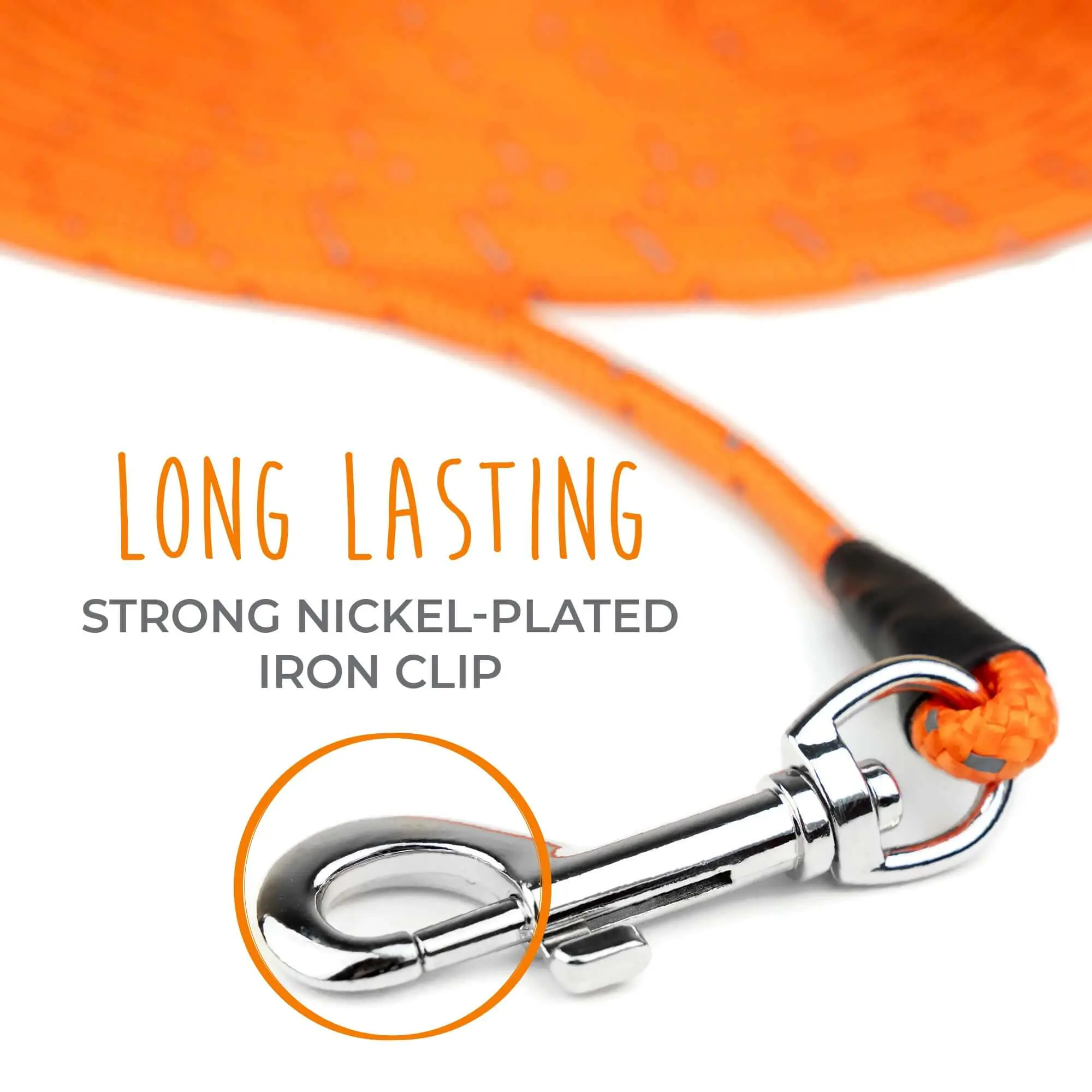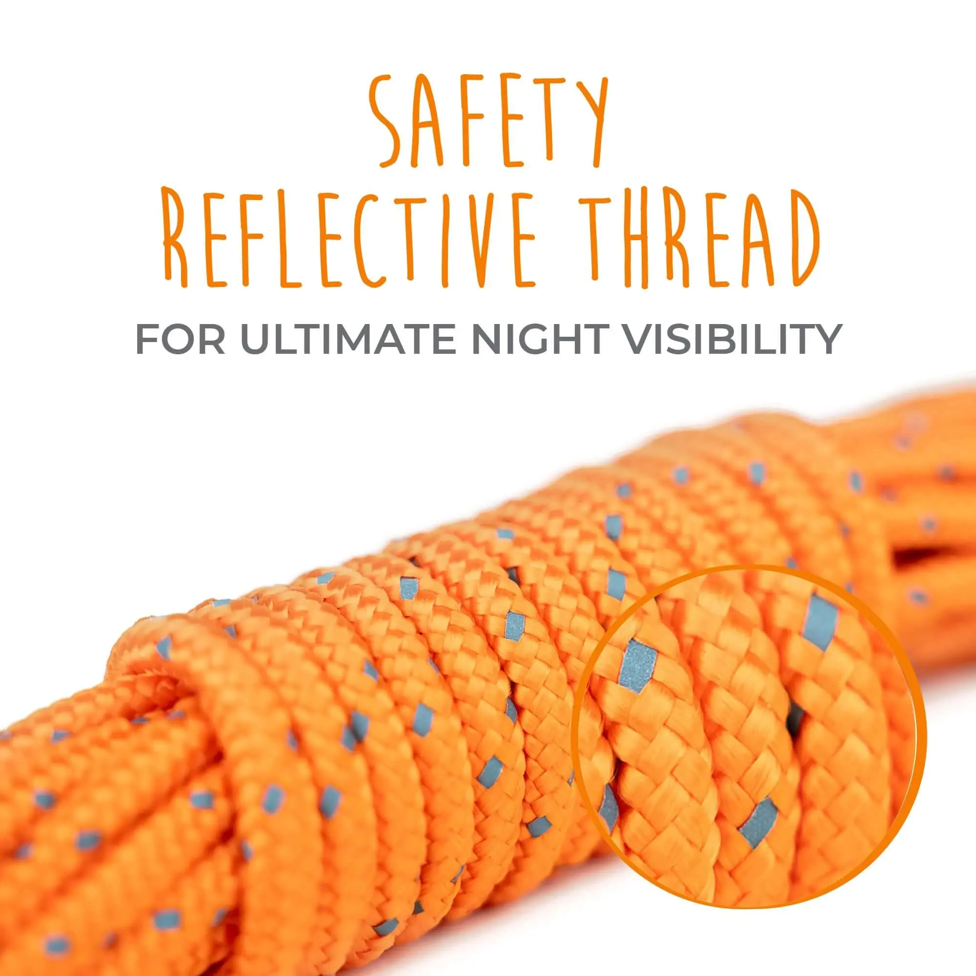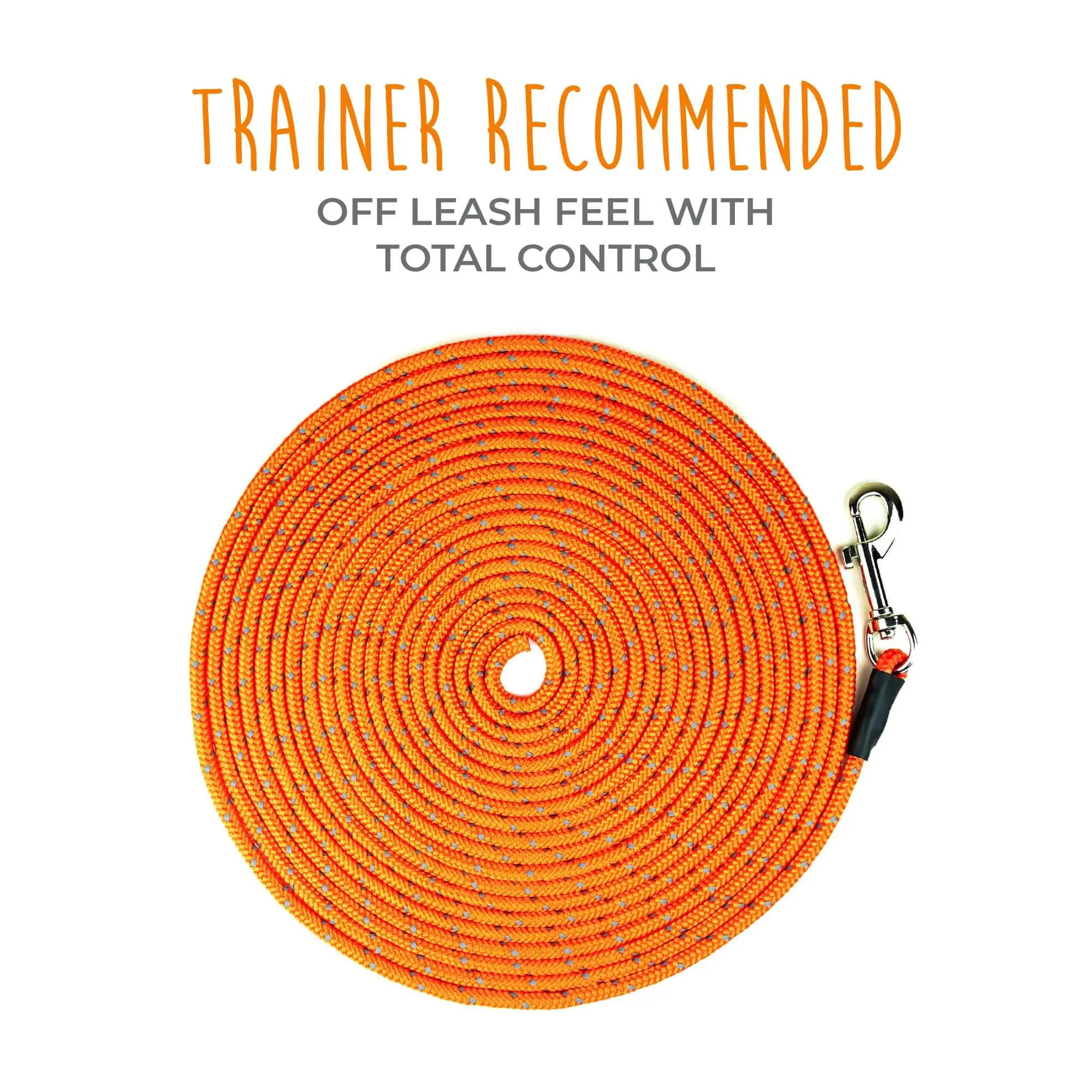 Bright orange with reflective stitching, this cord is highly visible in low light and even floats on water, making it excellent for swimming and water play. Perfect for any training scenario, this cord ensures you have control from a distance while keeping your pup safe.