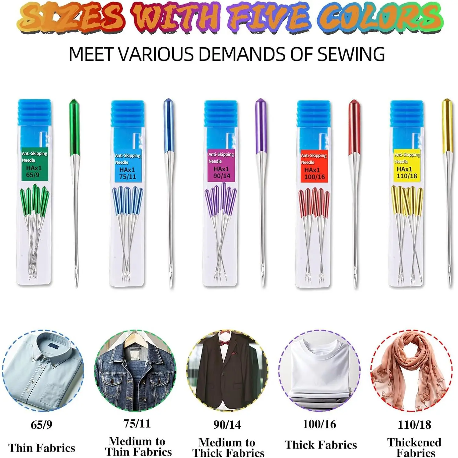 Size Usage Recommendations: Sizes of Sewing are Recommended for Different Fabrics.No. 9(65/9) is Suitable for Thin Fabrics Such as Yarn,No. 11(75/11) is Suitable for Medium-thin Fabrics Such as Shirts and Satin,No. 14(90/14) is Suitable for Ordinary Fabrics Such as Windbreakers,No. 16(100/16) is Suitable for Thick Fabrics Such as Jeans,And No. 18(110/18) is Suitable for Relatively Thick Fabrics Such as Thick Coats