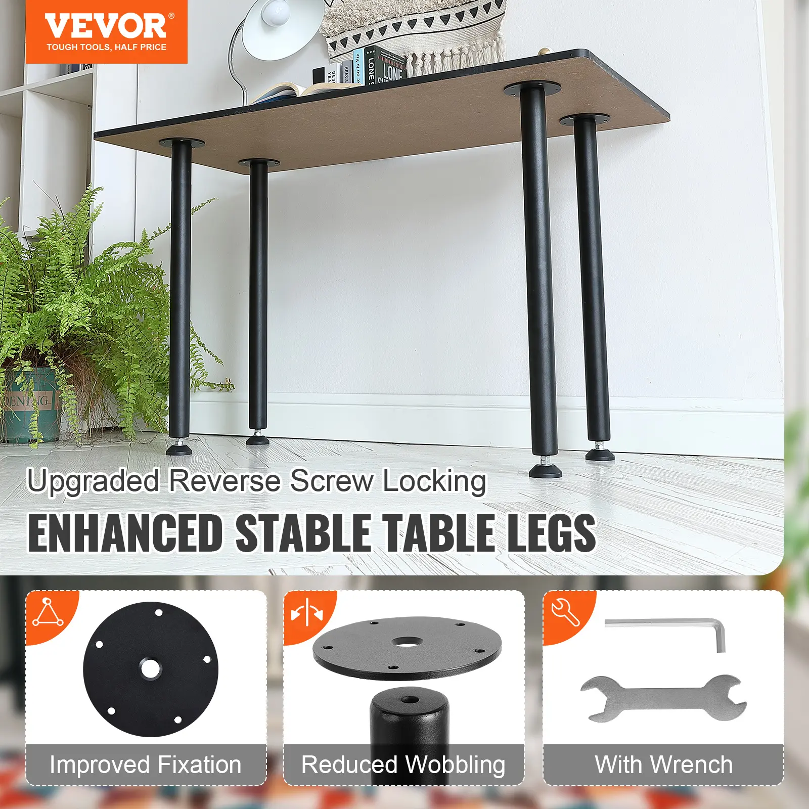 • Compatible with Multiple Tabletops: This adjustable table leg is a practical furniture accessory made of durable materials. It can adapt to tabletops of various shapes and is suitable for different living spaces. It can be easily moved and is suitable for use in kitchen tables, living room consoles, studio desks, and more.
