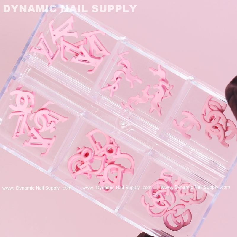 30 pcs Pink Multi-shapes Resin Brand Name Charms for Nails Art Design