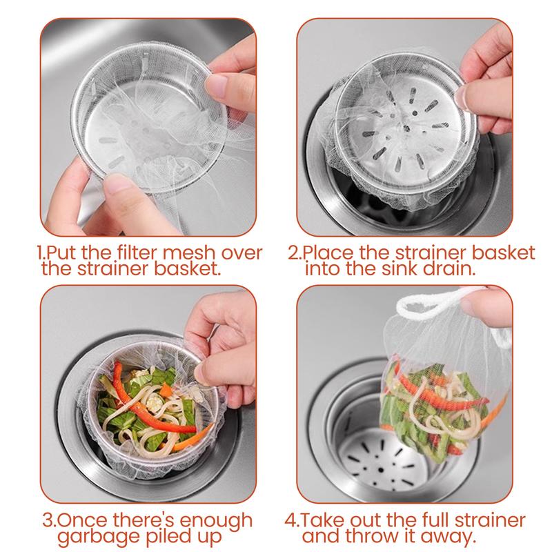Este filtro de drenaje para fregadero estå exelente son desechables bolsitas de malla también tienen capacidad de estiramiento lo cual me encantó