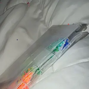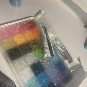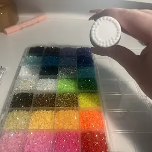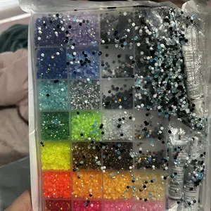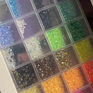My product came with a side of the top broken and i can only close it on one side causing it to spill out if turned upside down. when it arrived the gems were all mixed together ive used it and bedazzled a few things now but its very frustrating to have to separate the gems everytime i use it.