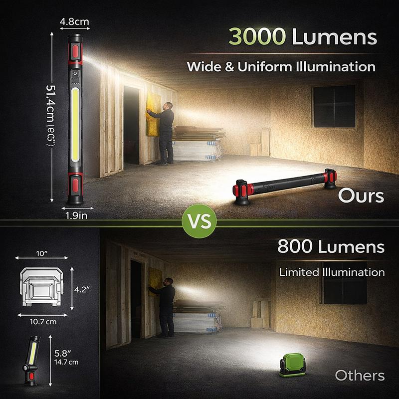 This versatile work light offers 3000LM brightness, perfect for car repair, garage, and jobsite tasks. Choose from 3000mAh or 5200mAh battery options. The underhood LED bar features dual magnet bases and a hanging hook for convenient use. 🌟
