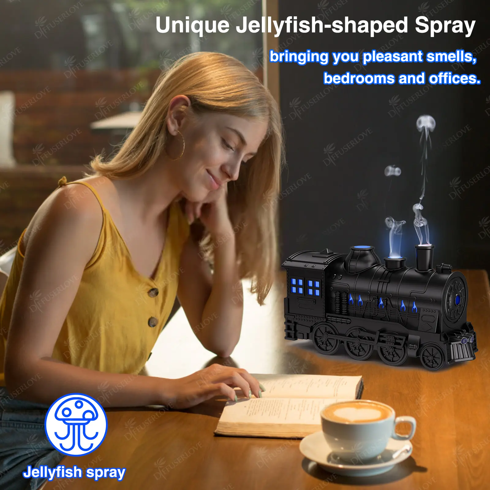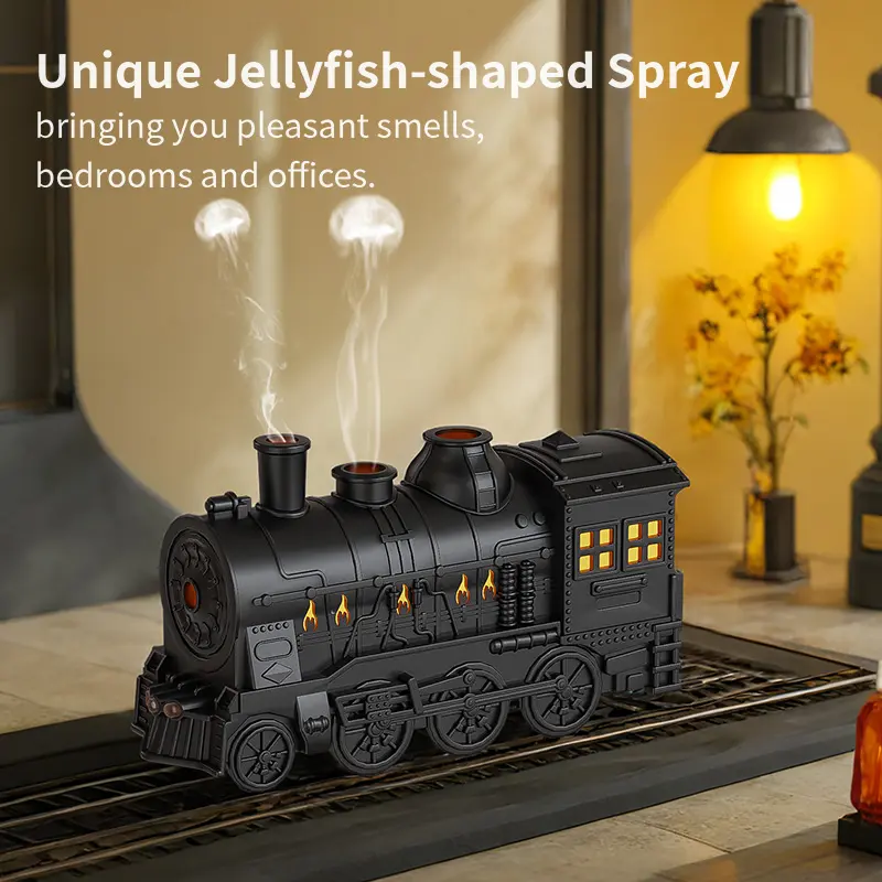 ·【Train Design Air Diffuser】 The humidifier adopts a cute train-shaped design with classic Black/White/Green/Gold fashionable color scheme, making it look high-end and elegant.