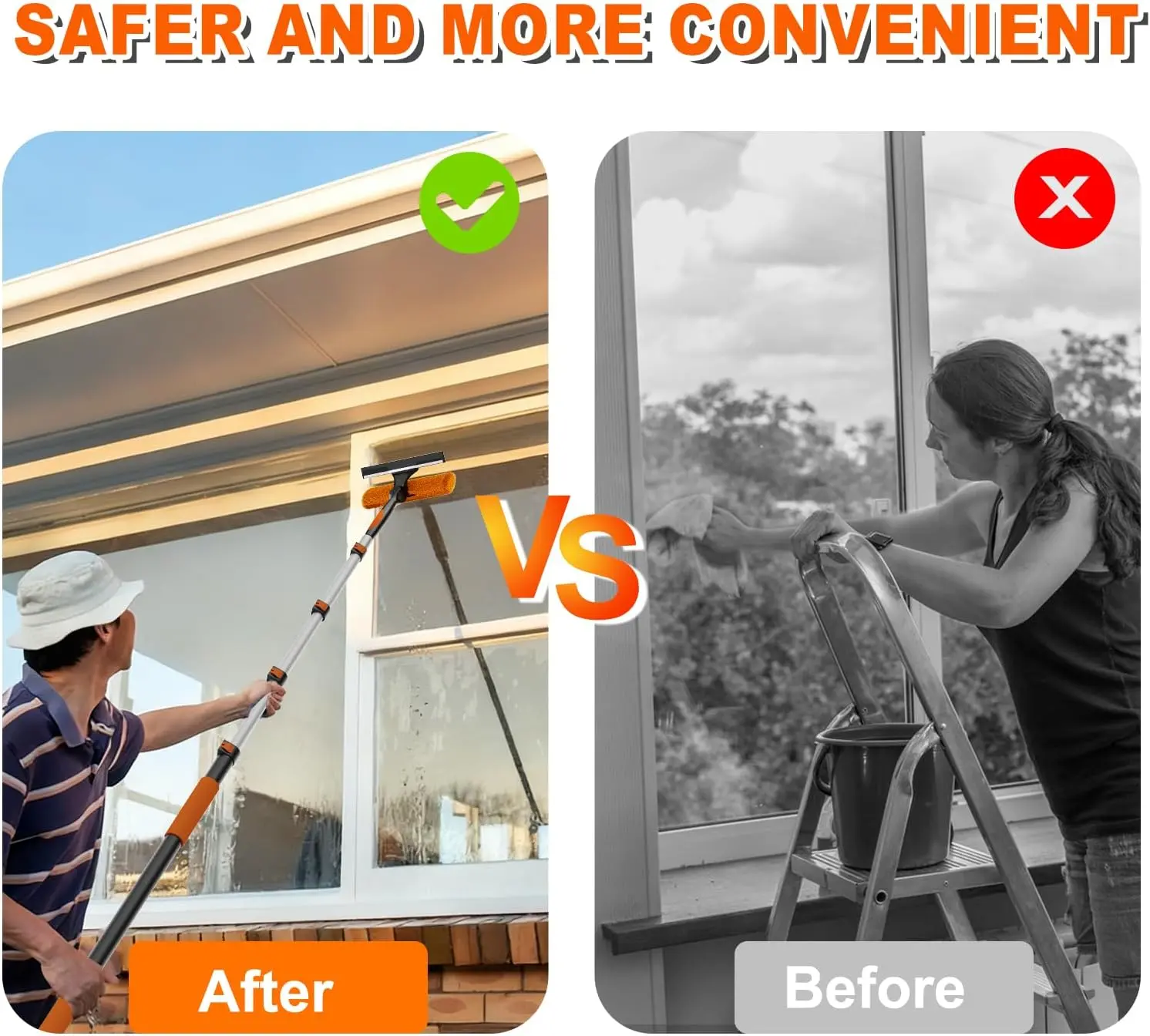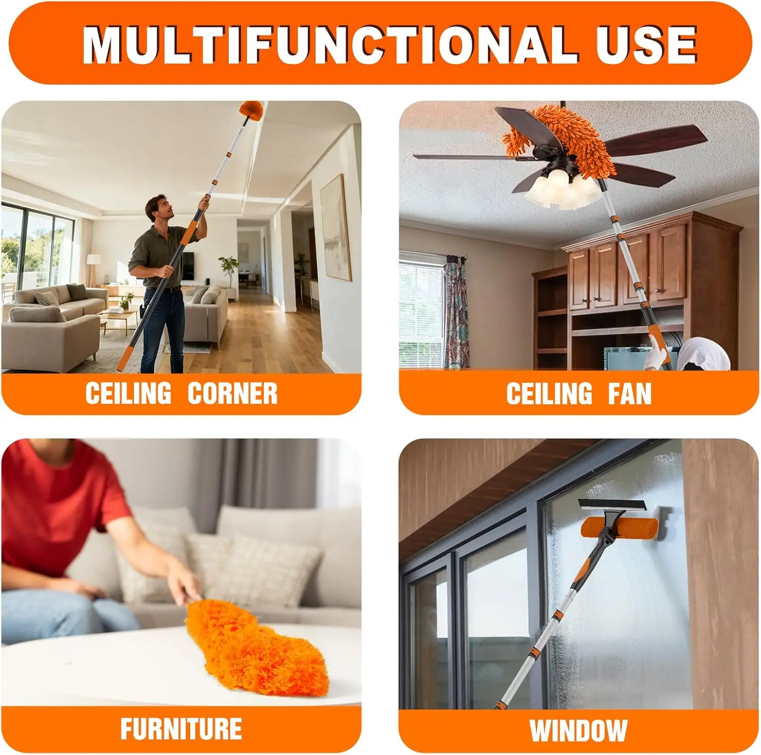 ·Ultra-Long Extension, All-in-One Cleaning: This dusters for cleaning with 5-24FT extension pole extends up to 30 feet, effortlessly reaching high ceilings, fans, and large windows.Equipped with a ceiling fan cleaner duster and a window washing kit with extension pole, it offers versatile cleaning solutions for every corner of your home.Whether for daily maintenance or deep cleaning, it's your go-to tool.
