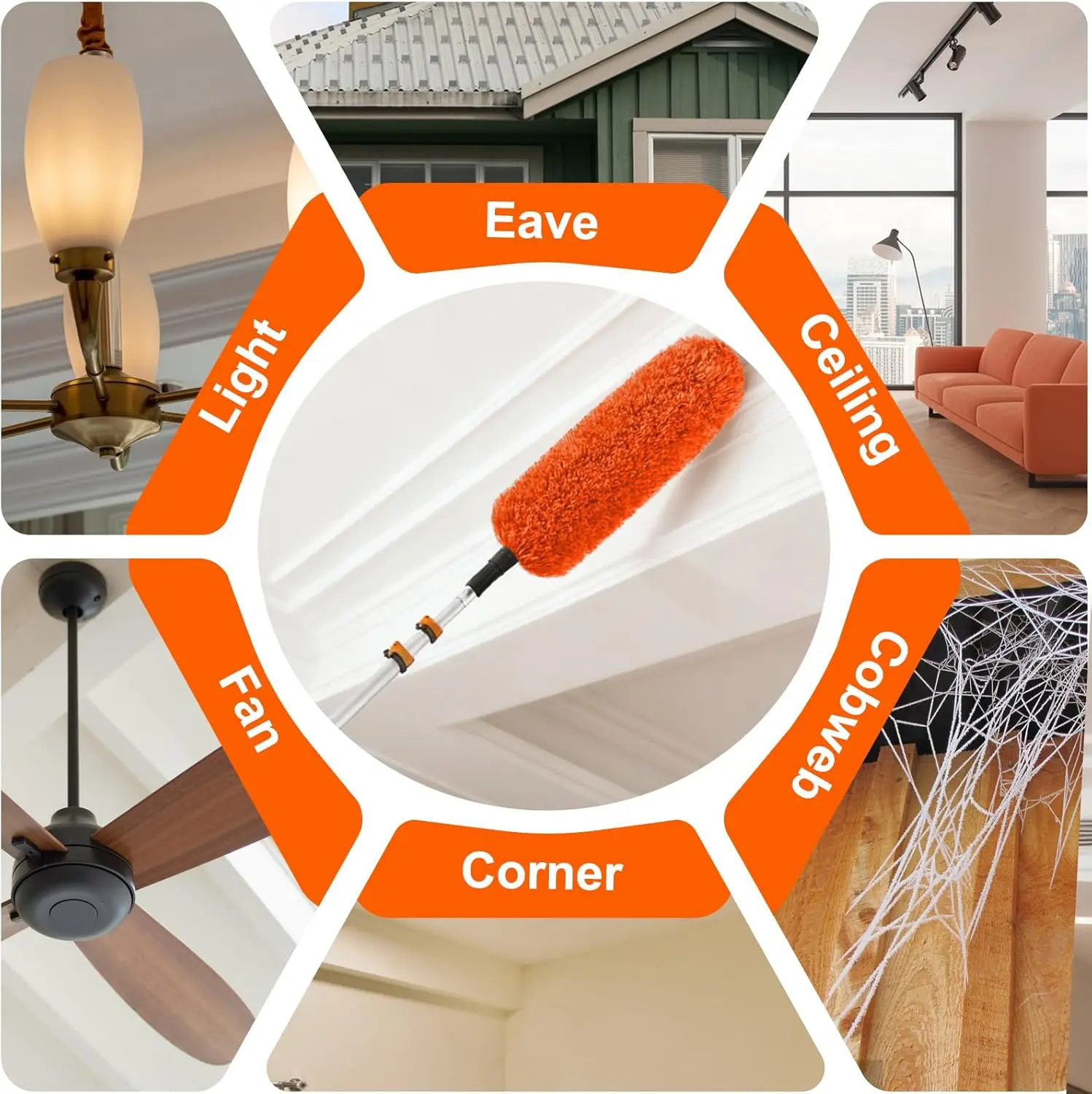 ·Flexible & Bendable, No Dead Corners: The extendable duster features a bendable brush head that easily conforms to irregular surfaces like air vents and ceiling corners.Paired with a spider web brush with pole, it reaches narrow spaces and hidden corners, ensuring a dust-free environment. Use SISUPASSIE ceiling duster for effortless dust removal.